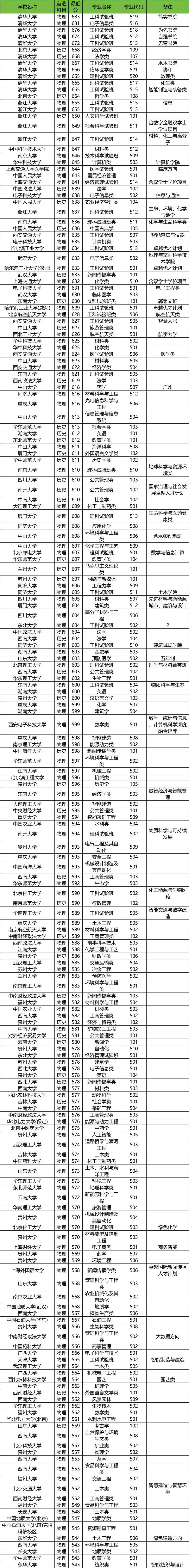 下面是具体院校录取情况(分数线从高到低排名):