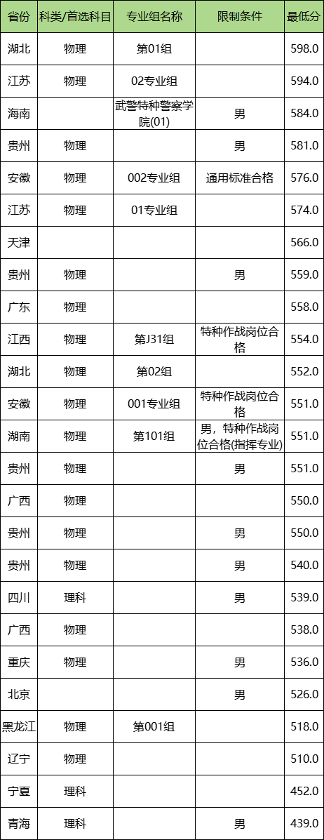 录取标准:综合考虑考生的高考分数、体检结果、政治考核情况等多方面因素择优录取12。