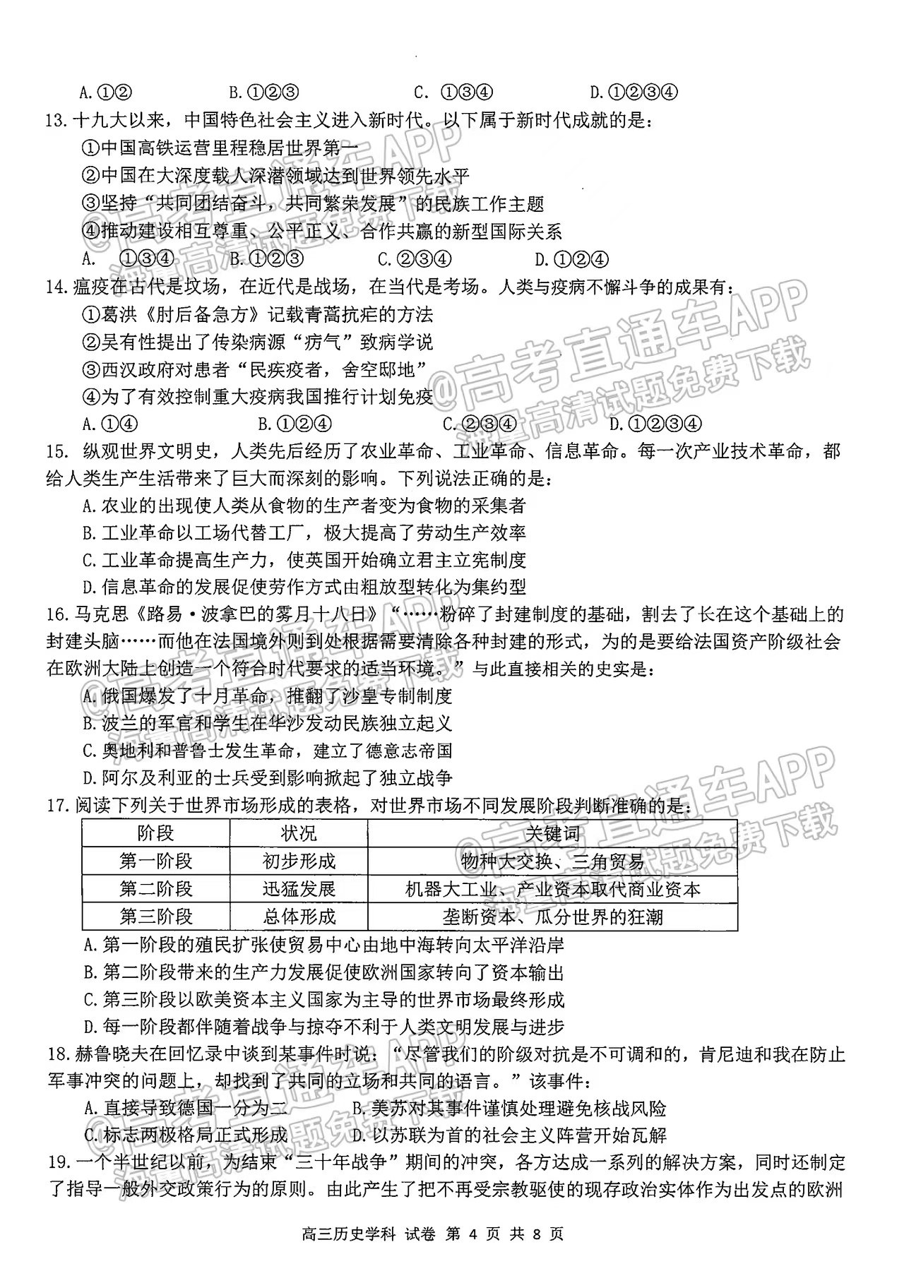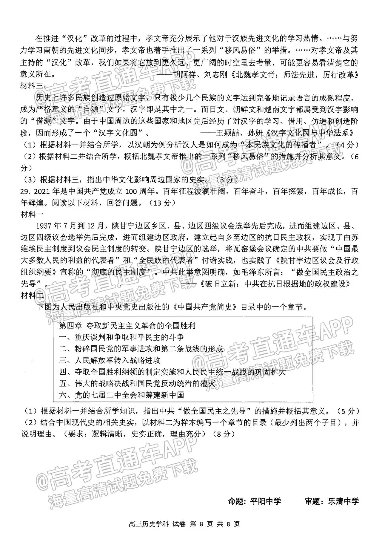 一.2023浙南名校(温州九校)高三十月联考历史试题及参考答案