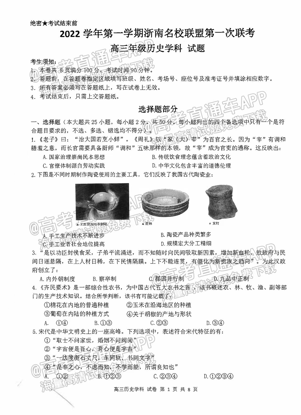 1.2023浙南名校(温州九校)高三十月联考历史试题