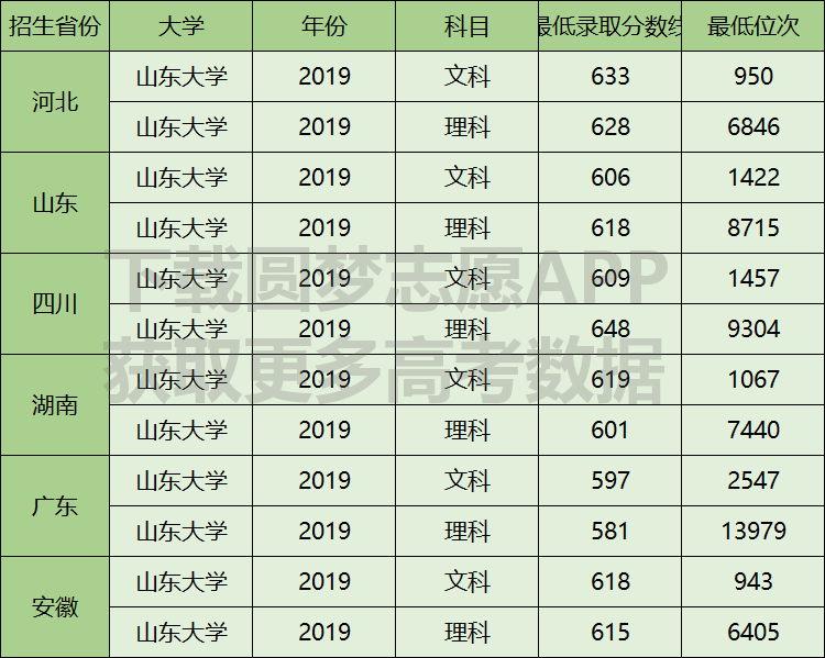 大学的录取分数和位次情况在一定程度上也可以反映学校的实力,我们为大家整理了2019年山东大学在河北、河南、山东等省份的文理科最低录取分数线和位次。从表中我们可以看到,想要考取山东大学,高考分数至少要在600分以上。从位次上来说,文科生至少需要排在1000名之内,而理科则最好在6000名之内。所以总体来说,能够考上山东大学的考生都是各省成绩比较优秀的,这也说明了山东大学是一所综合实力还不错的重点大学。