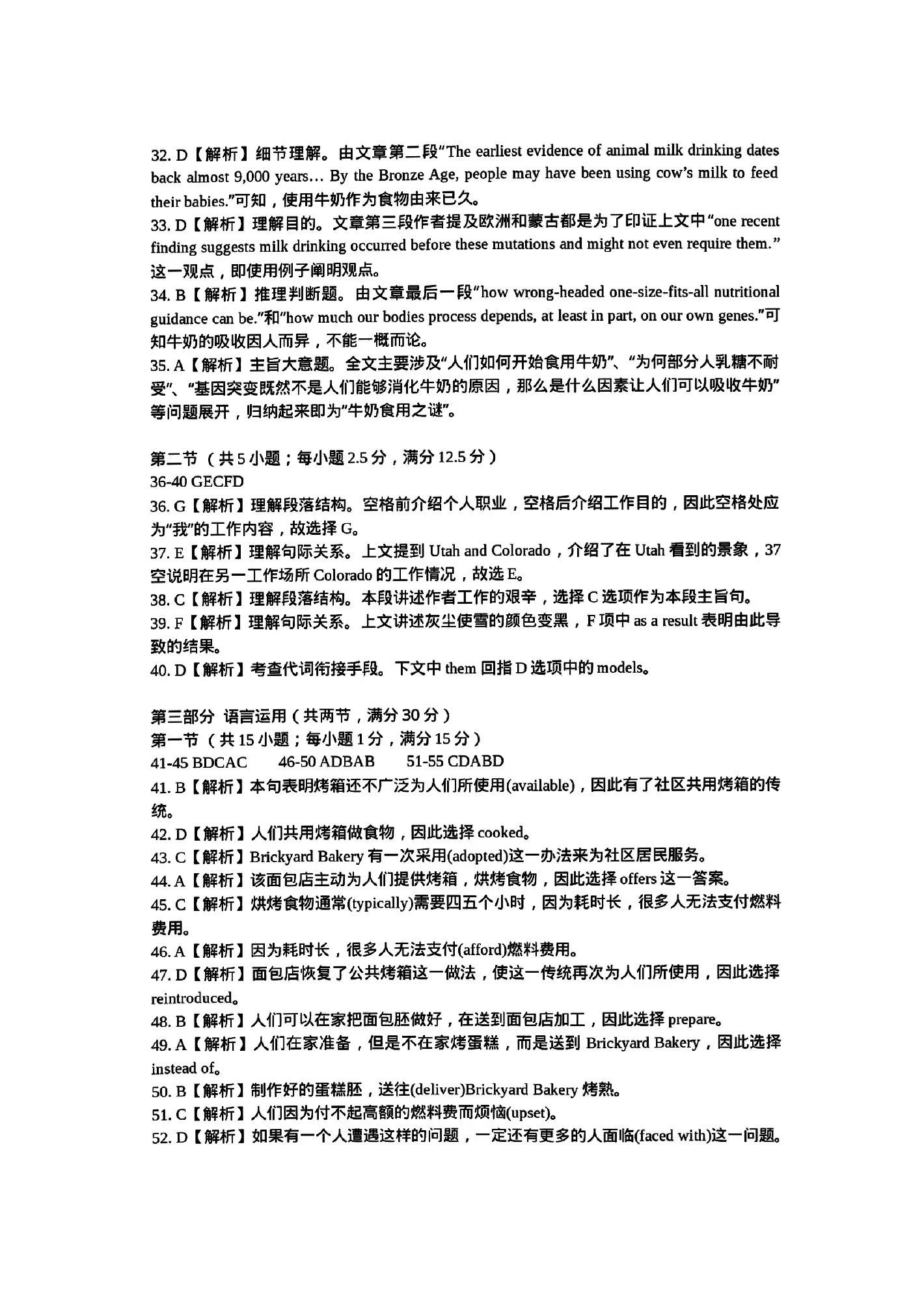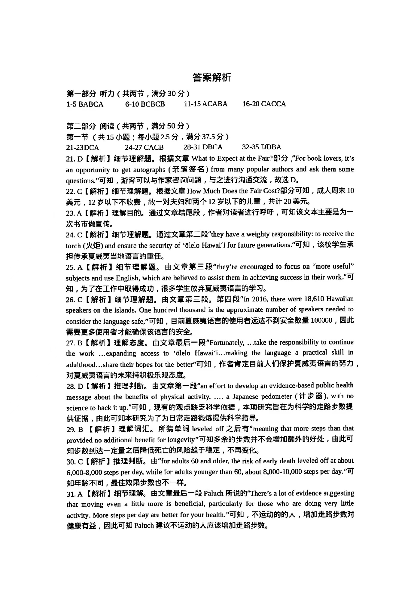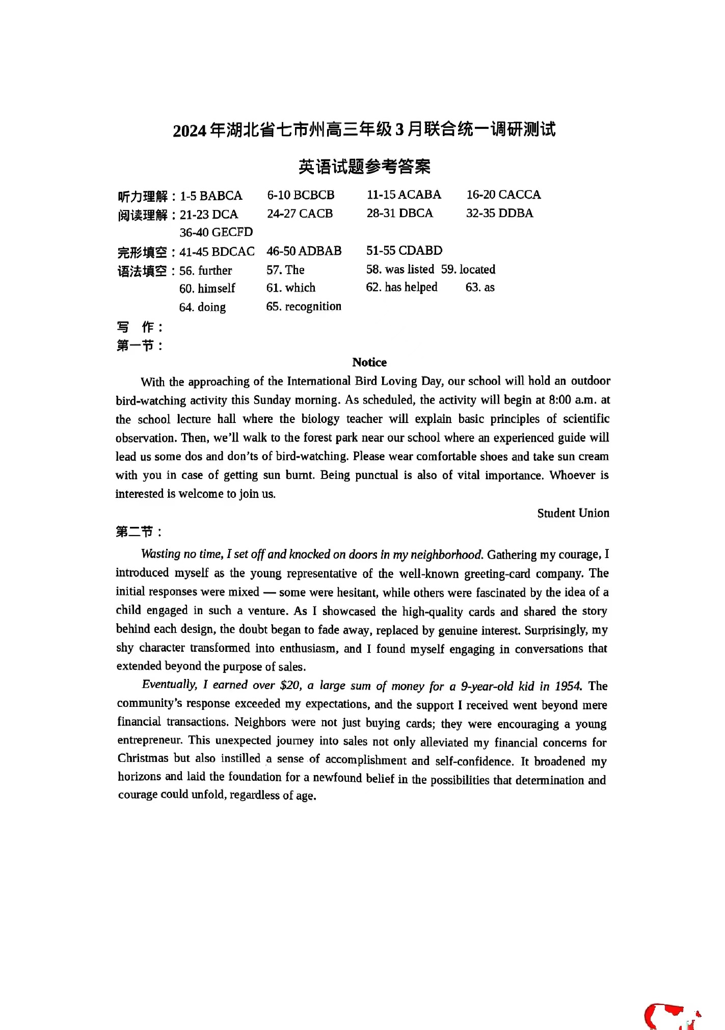 2、2024年湖北七州市联考英语试卷答案解析