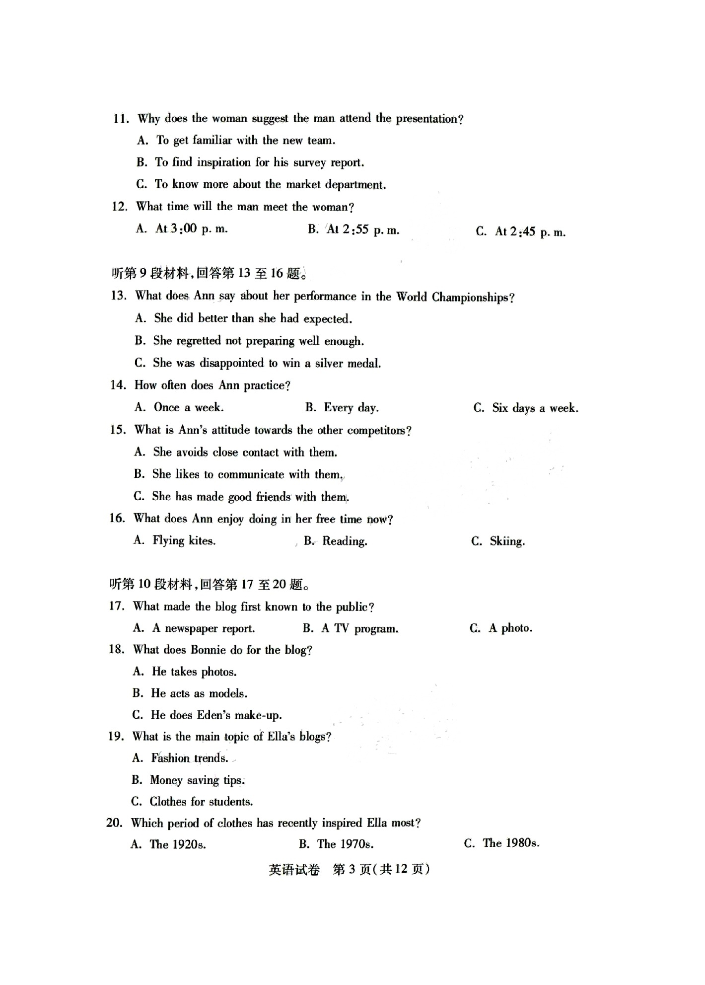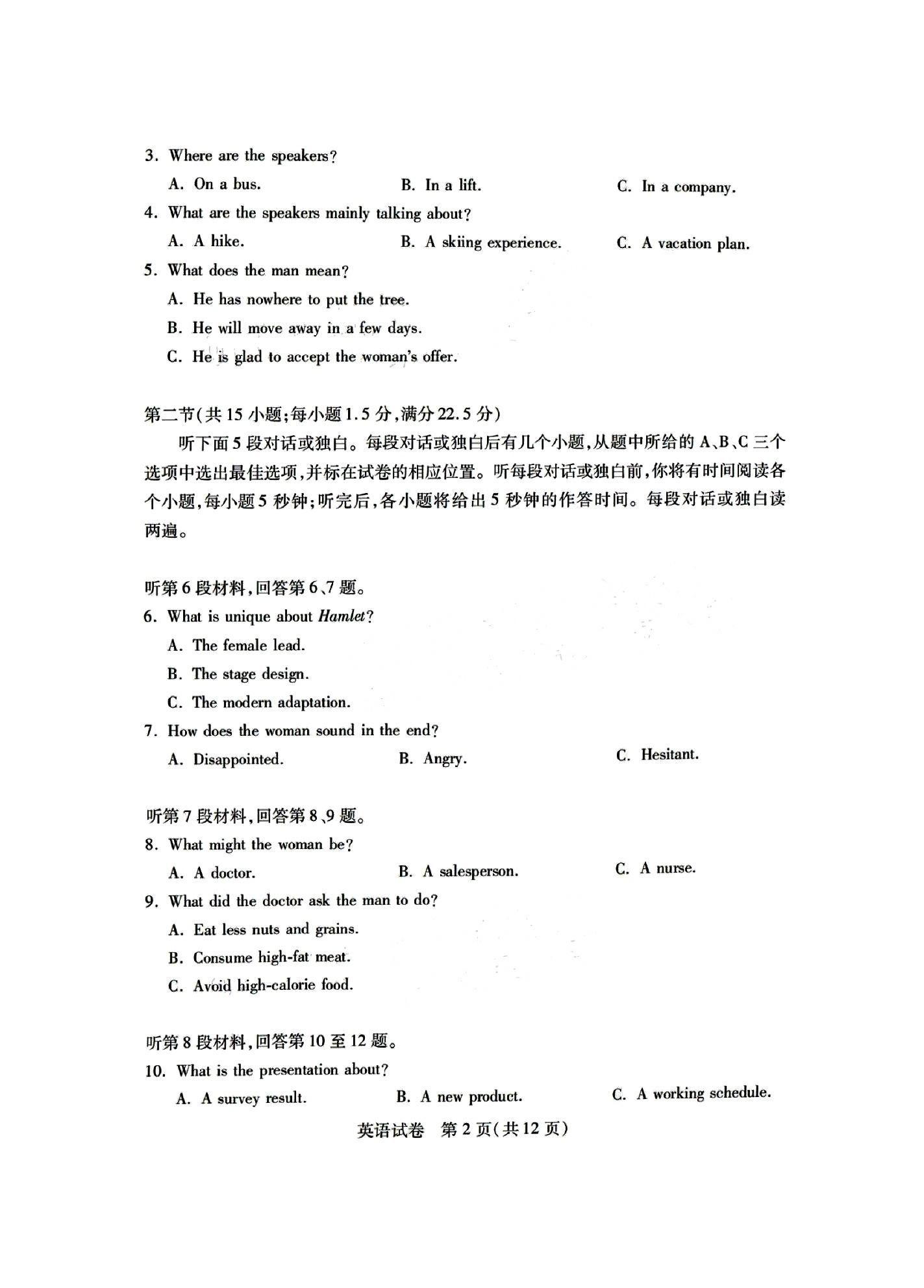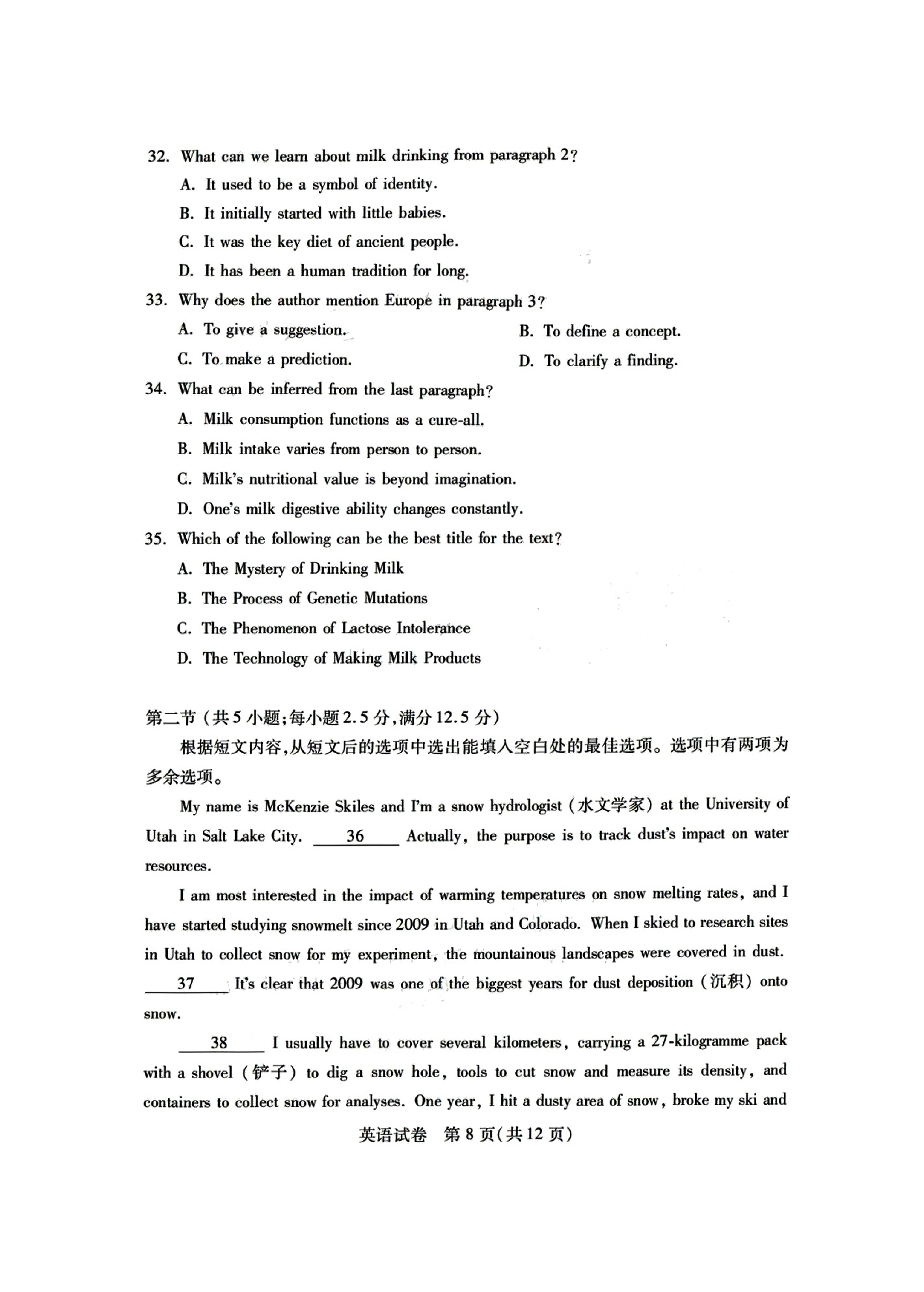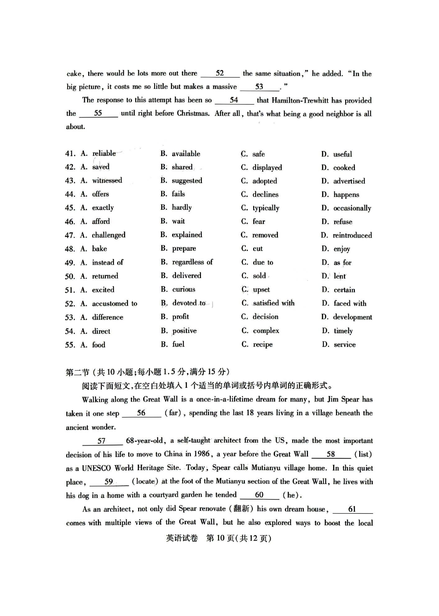 2、2024年湖北七州市联考英语试卷答案解析