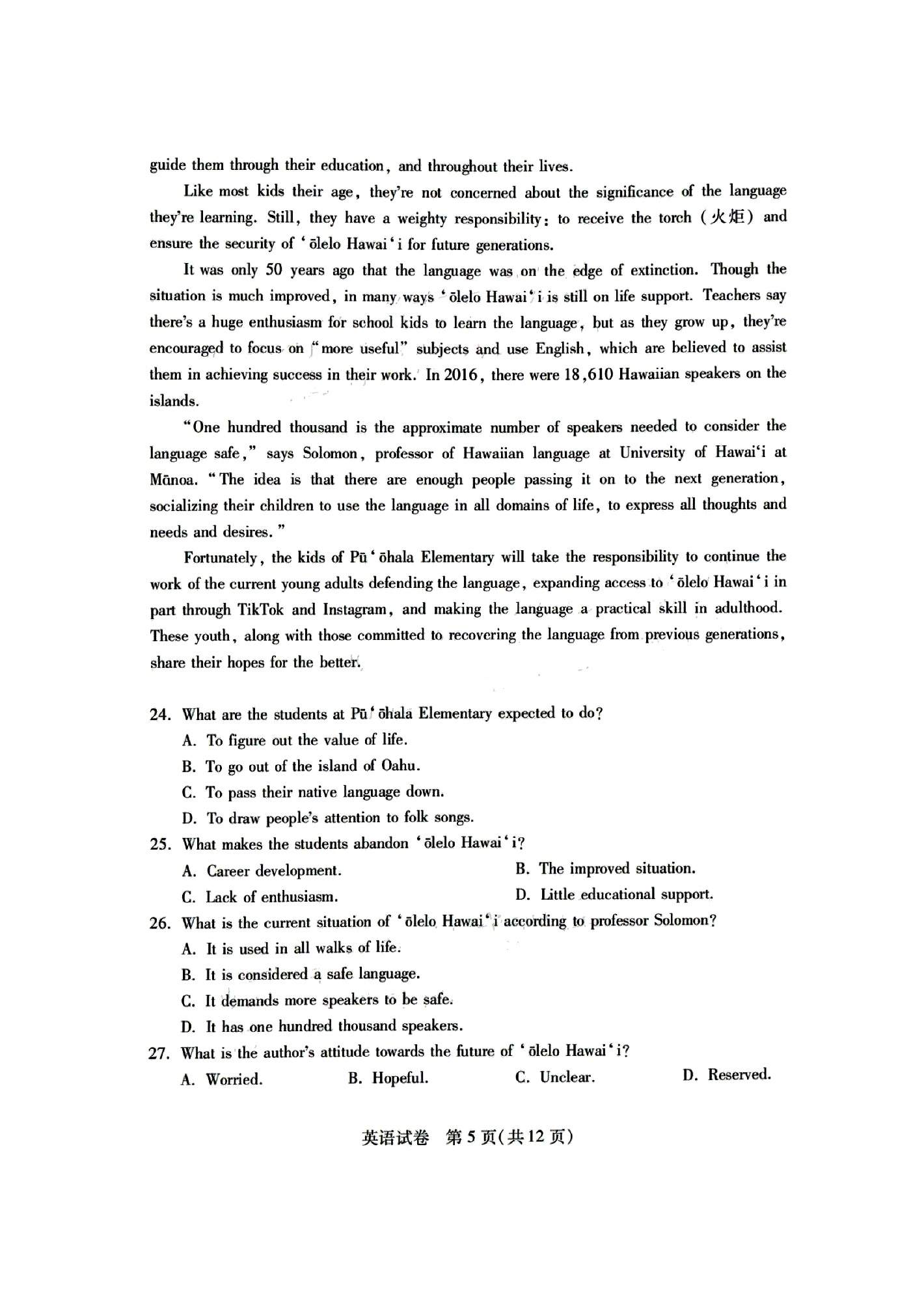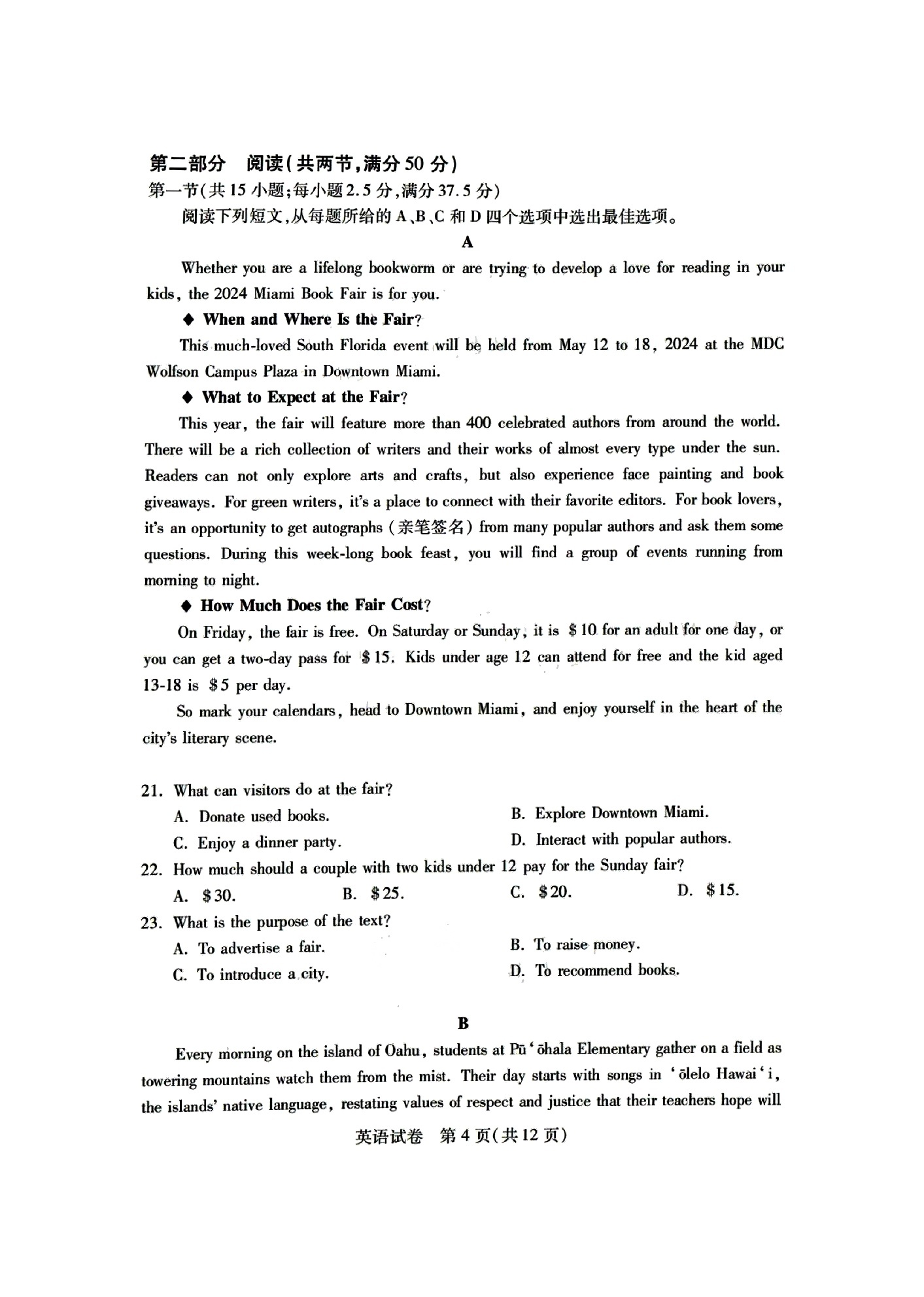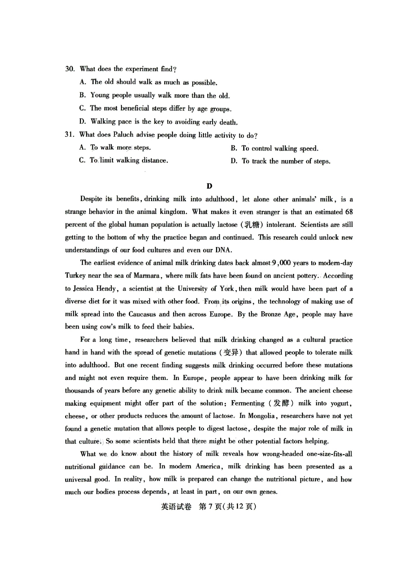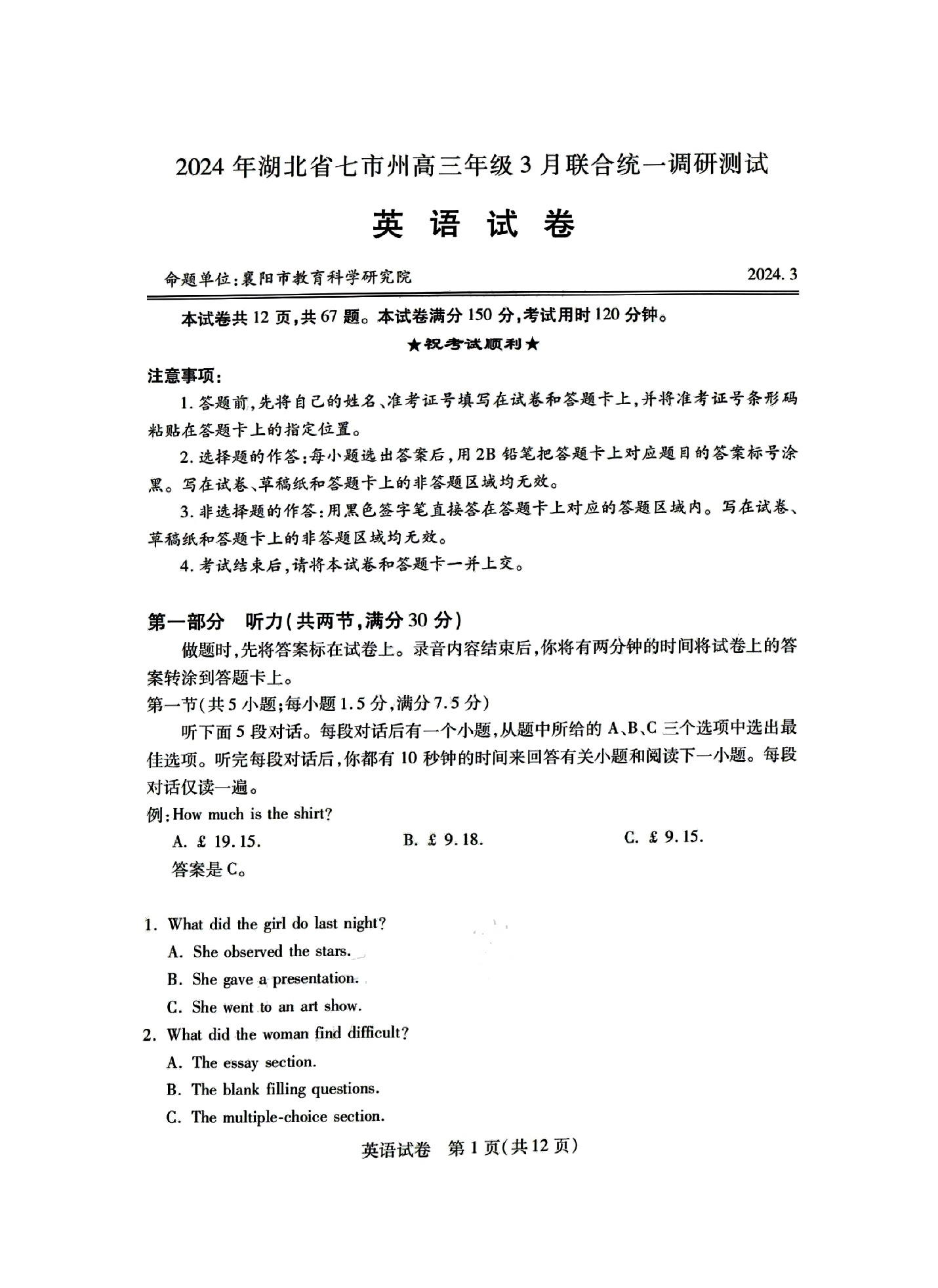 1、2024年湖北七州市联考英语试卷