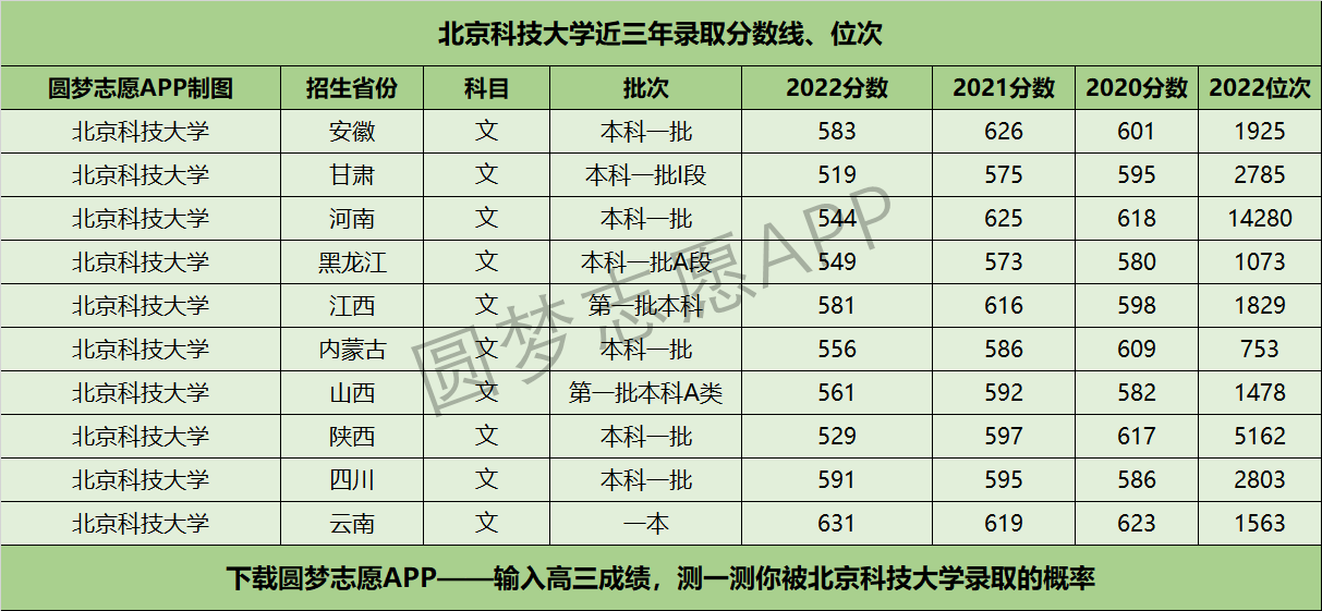 二、北京科技大学近三年录取分数线及位次【文科版】