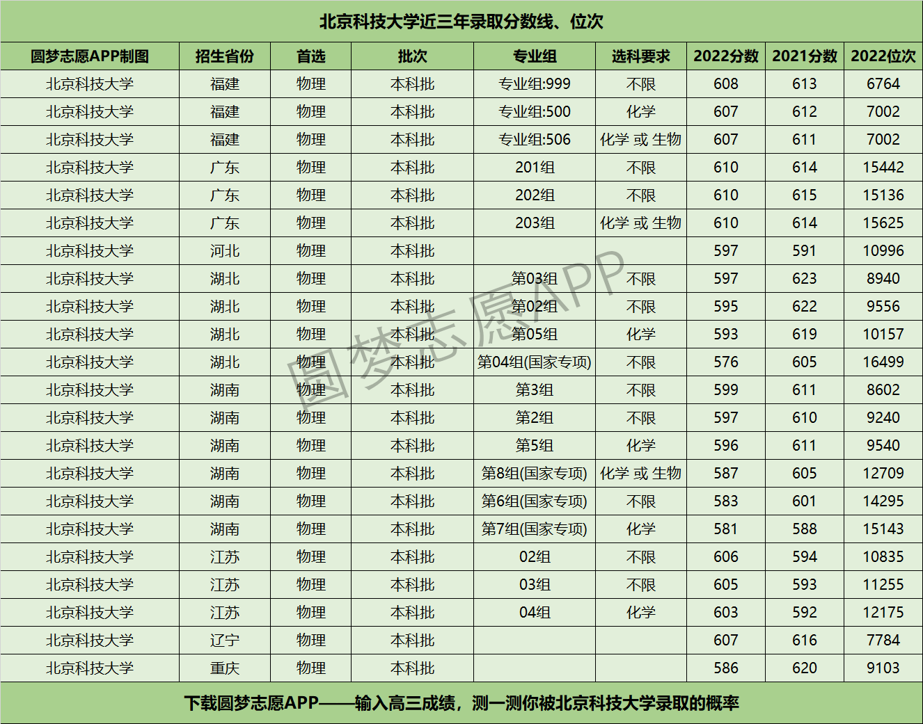 三、北京科技大学近年录取分数线及位次【首选物理版】