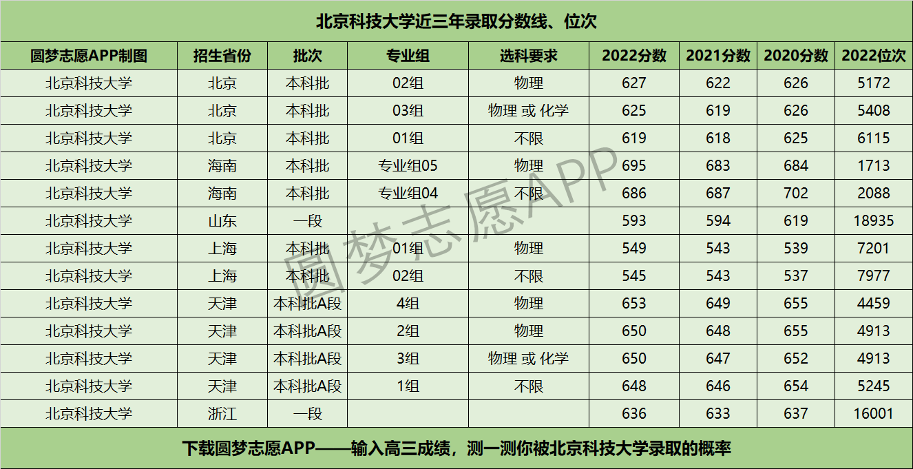 本文含北京科技大学近三年在【全国所有省市】的高考录取分数线、位次,篇幅较长,你可通过快速滑动找到你的高考省份。