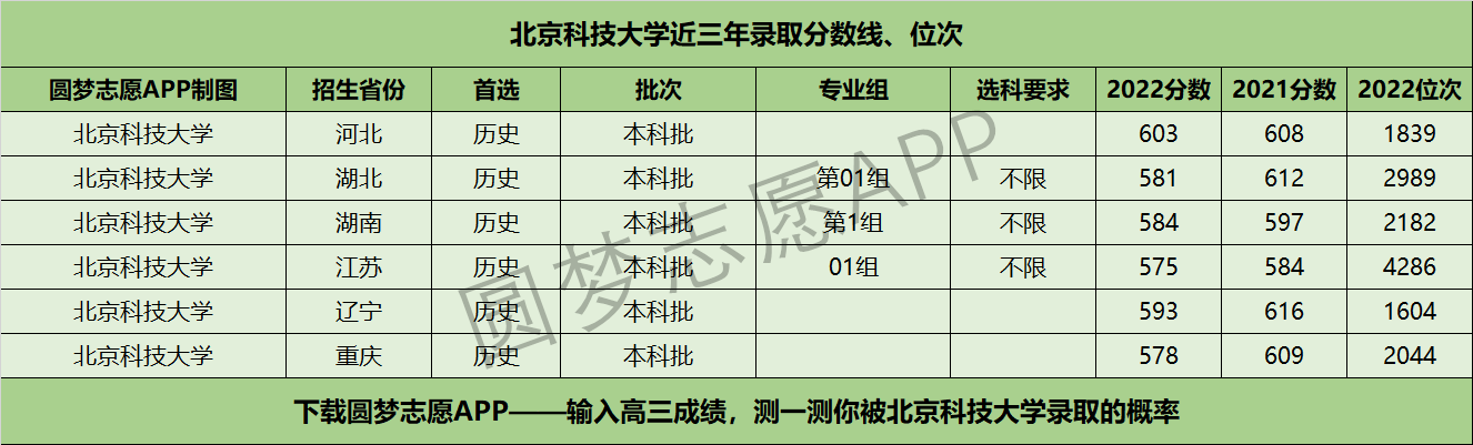 四、北京科技大学近年录取分数线及位次【首选历史版】