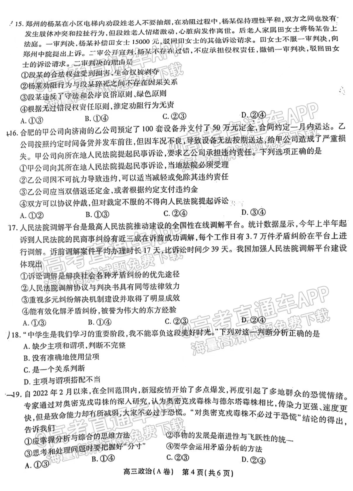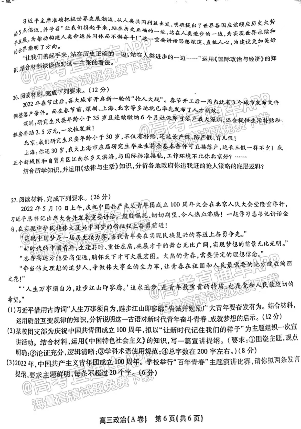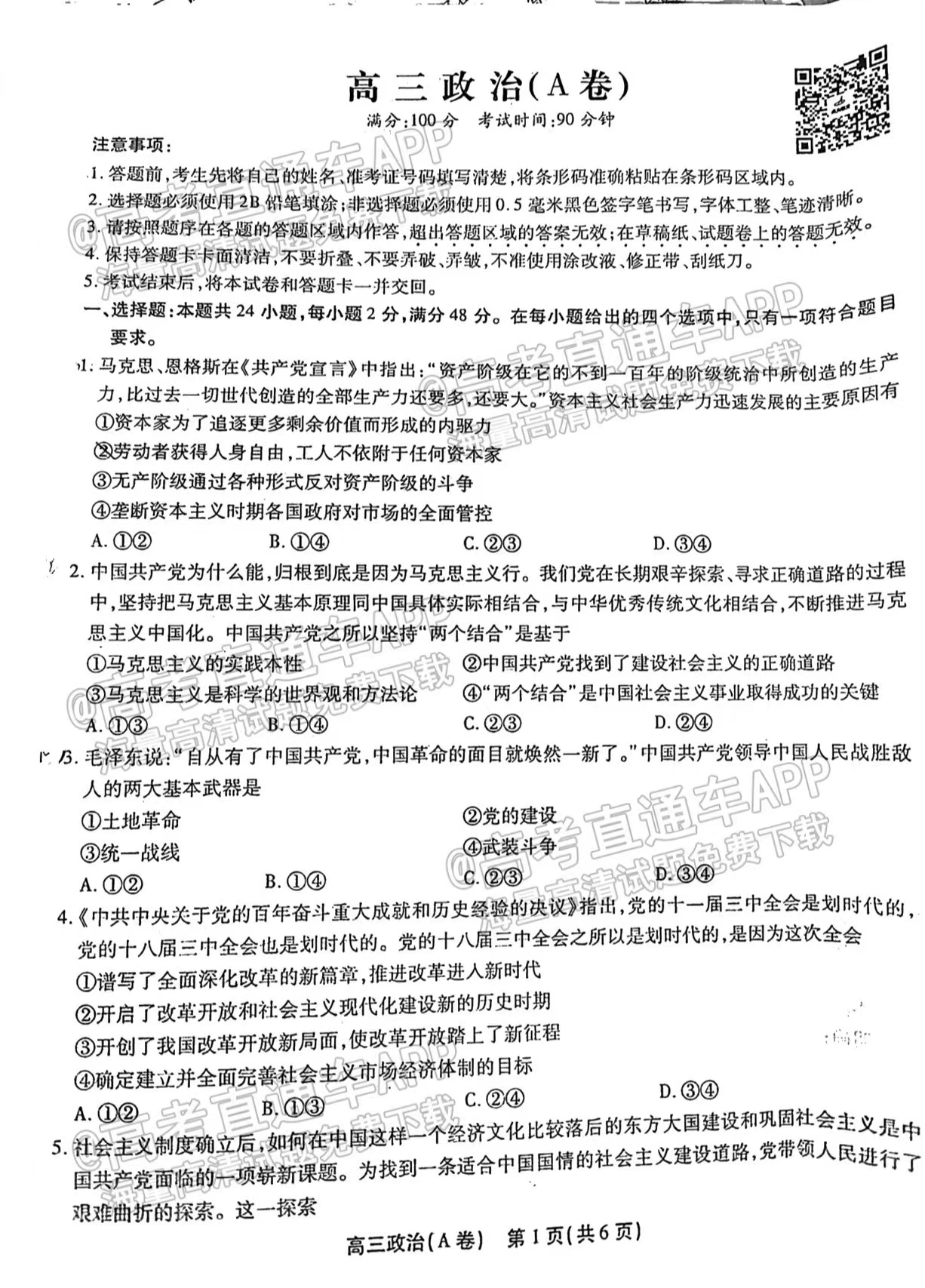 1、政治A卷