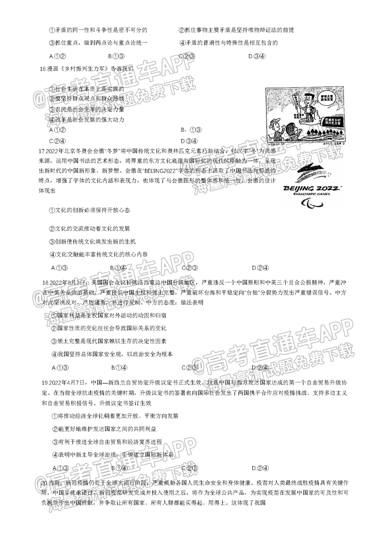二、2023安徽顶尖计划天一大联考政治参考答案