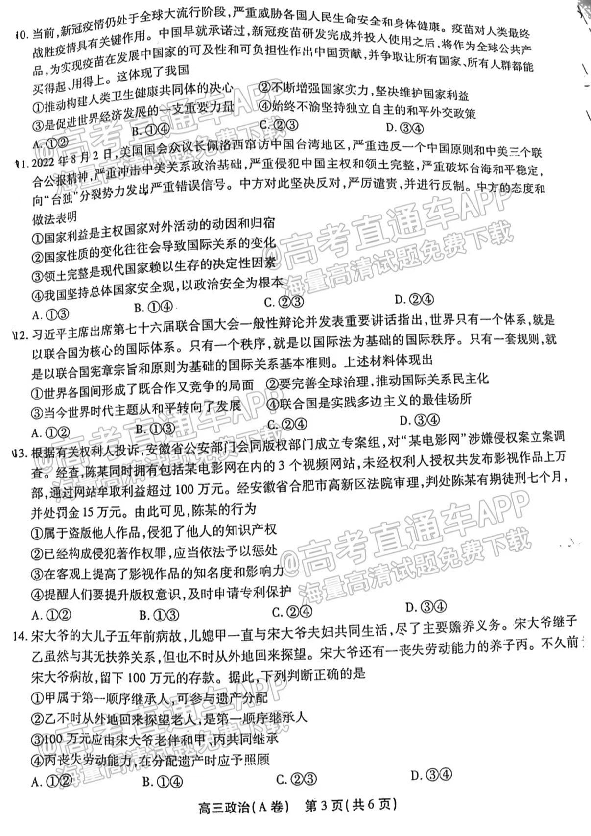 一、2023安徽顶尖计划天一大联考政治试题原卷