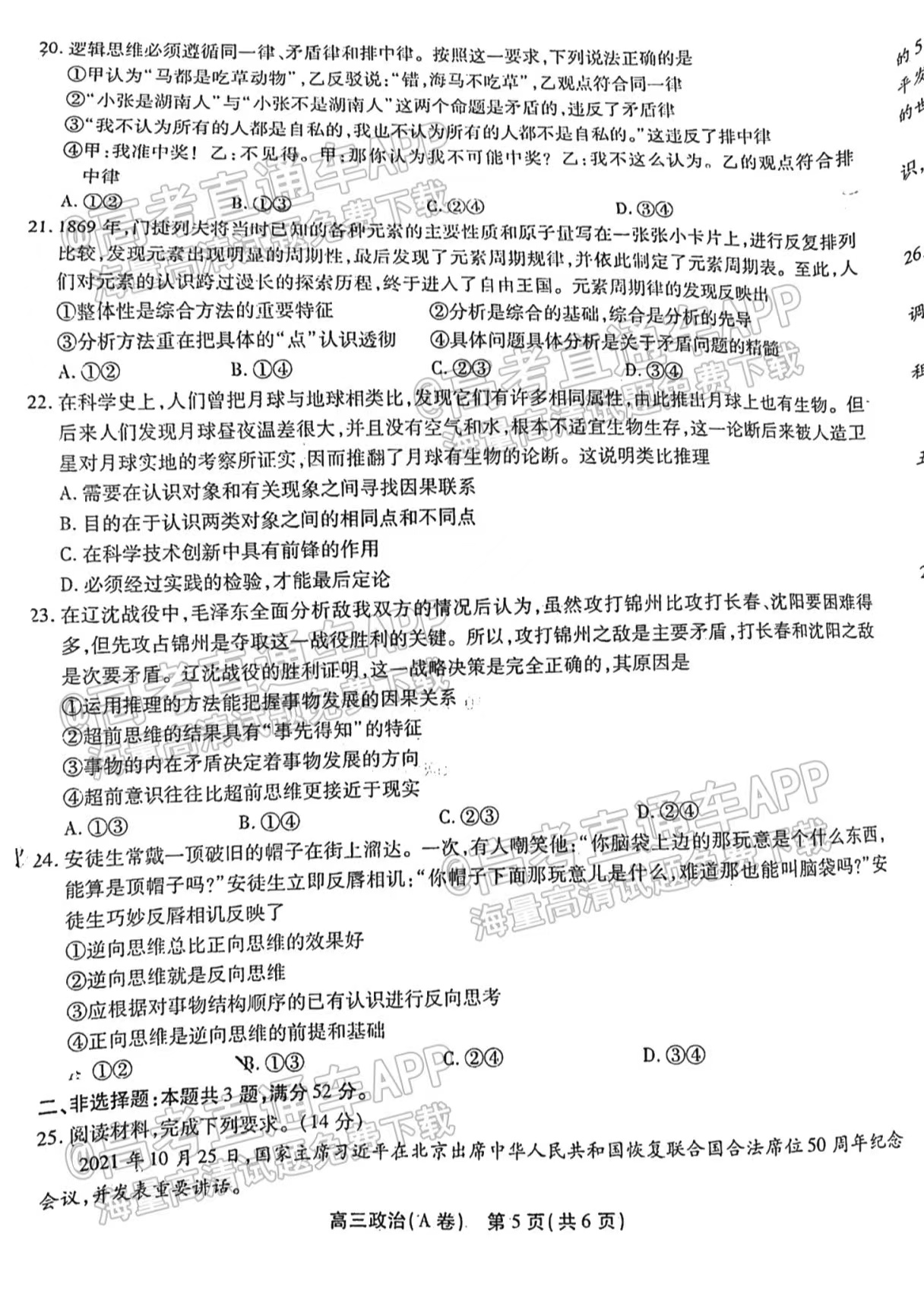 本文搜集整理了2023安徽顶尖计划天一大联考政治试题原卷及参考答案汇总,如需查询本次考试相关科目,可点击下方单独科目链接进行查看