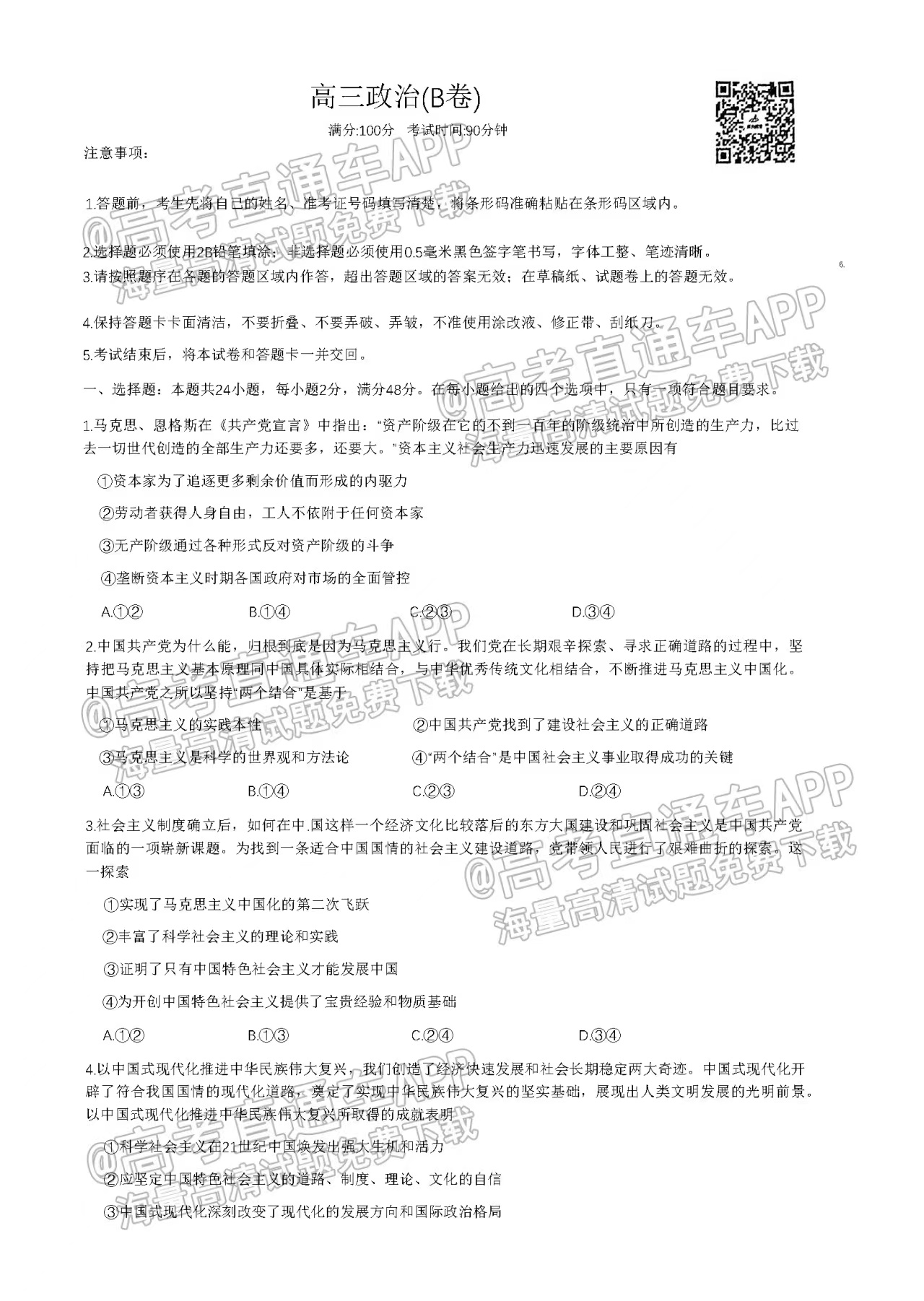 2、政治B卷