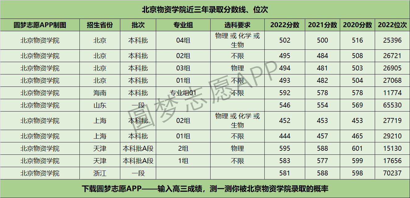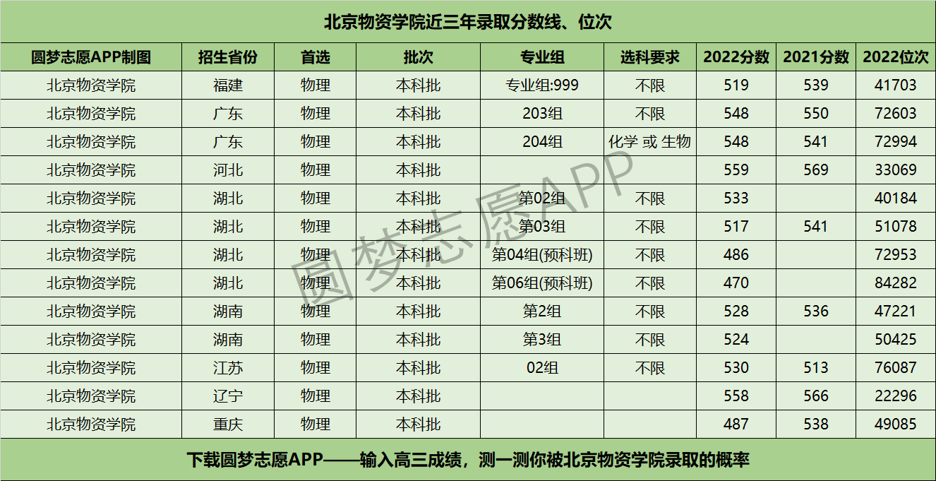 三、北京物资学院近年录取分数线及位次【首选物理版】