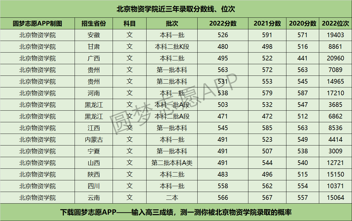 二、北京物资学院近三年录取分数线及位次【文科版】
