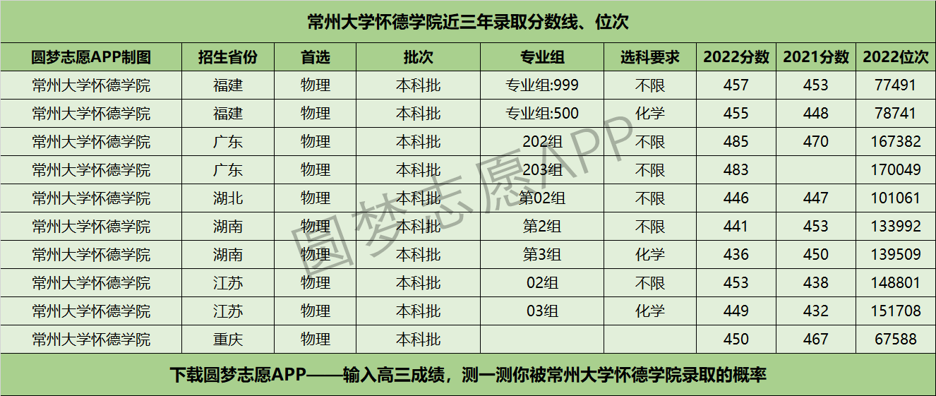三、常州大学怀德学院近年录取分数线及位次【首选物理版】