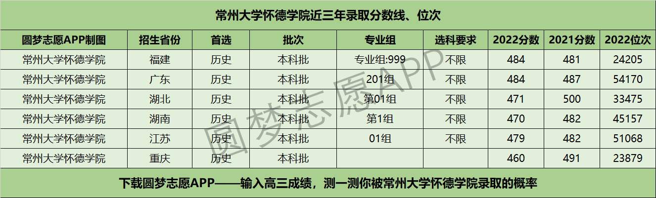 四、常州大学怀德学院近年录取分数线及位次【首选历史版】