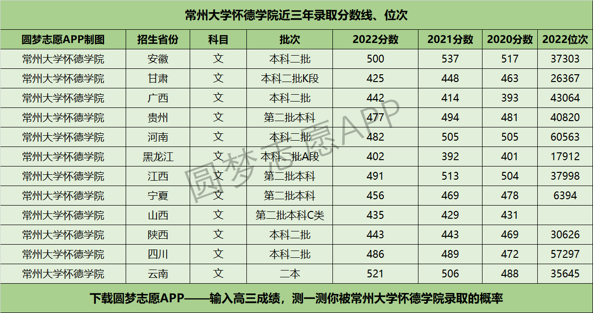 二、常州大学怀德学院近三年录取分数线及位次【文科版】