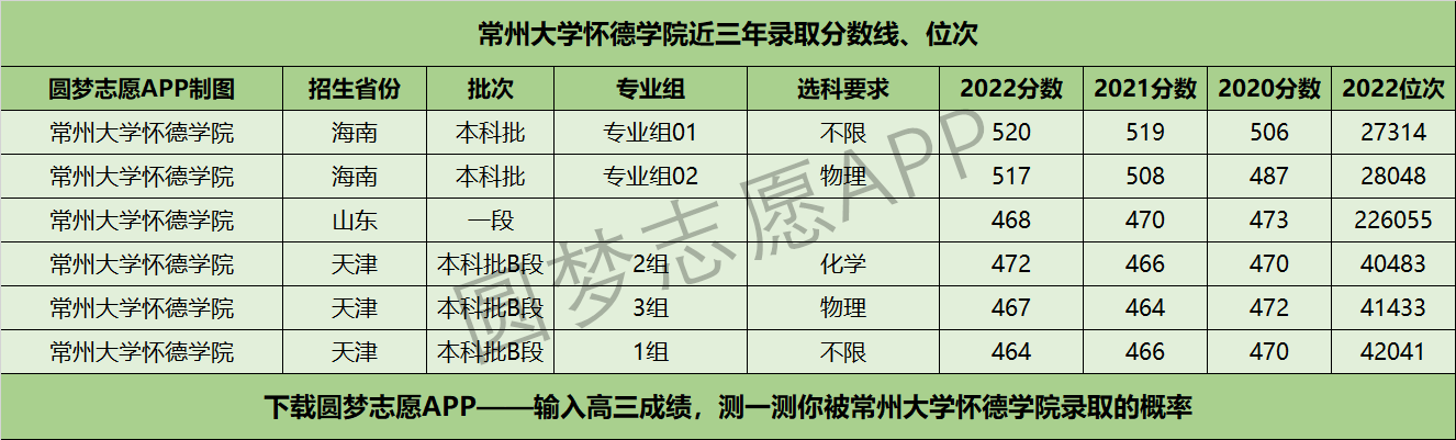 五、常州大学怀德学院近年录取分数线及位次【6选3省份】