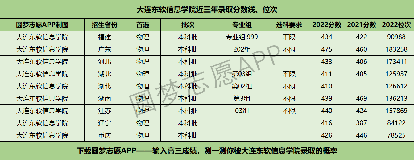 三、大连东软信息学院近年录取分数线及位次【首选物理版】