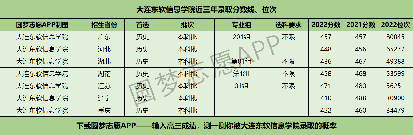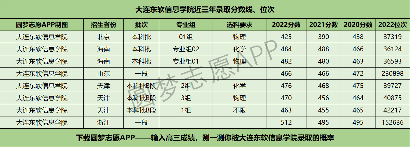 四、大连东软信息学院近年录取分数线及位次【首选历史版】