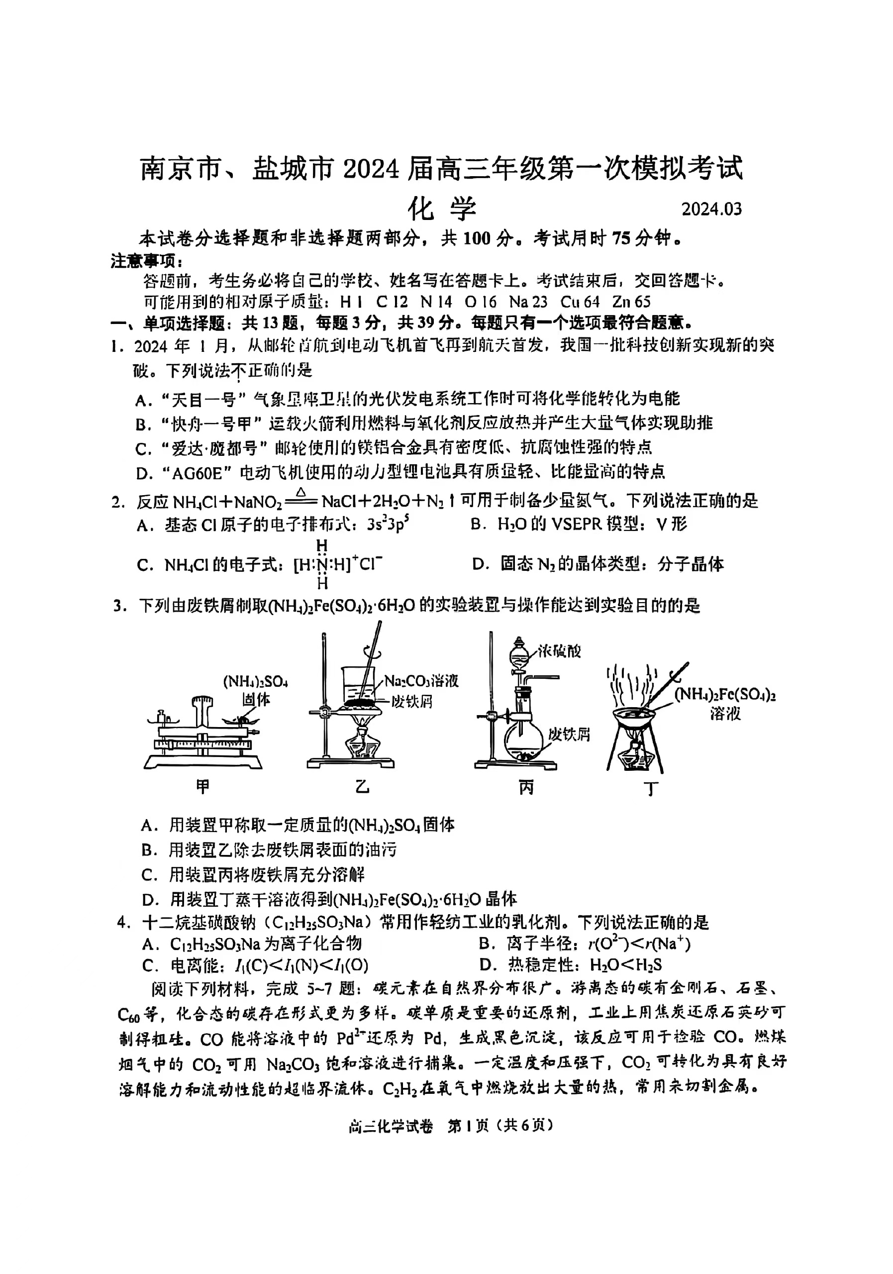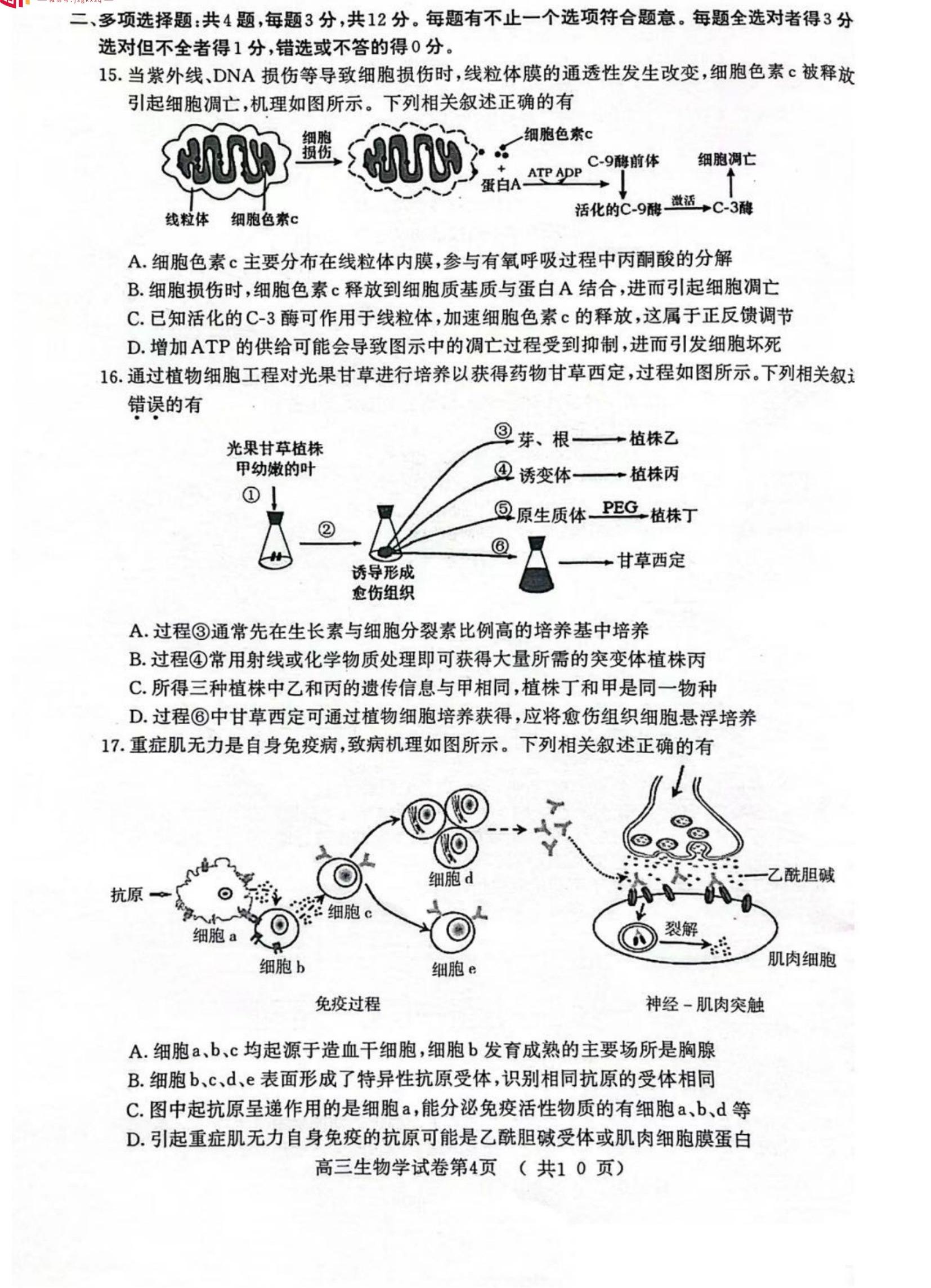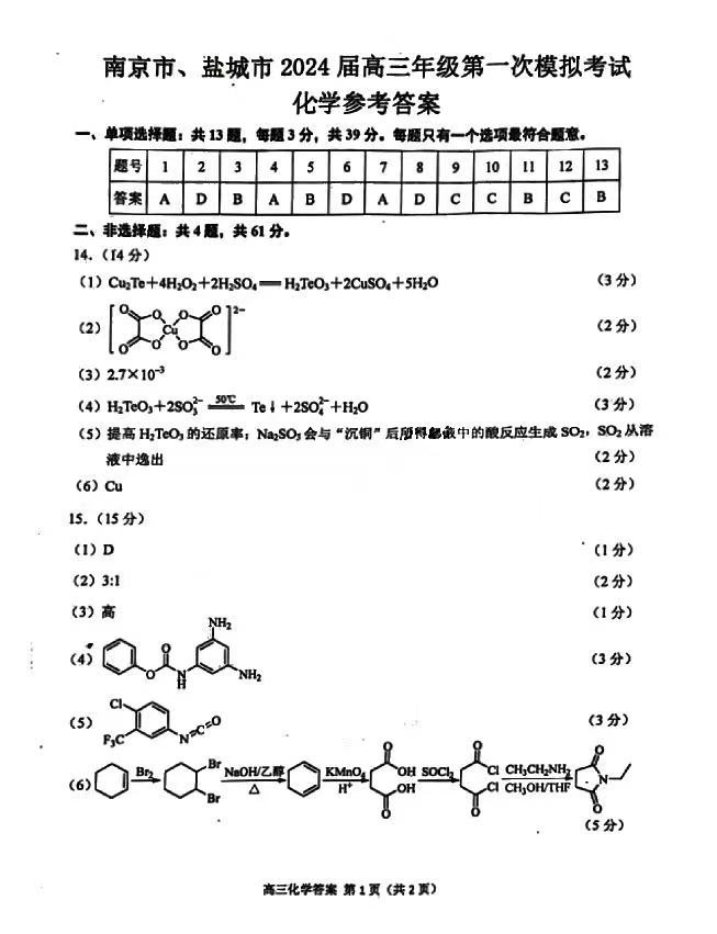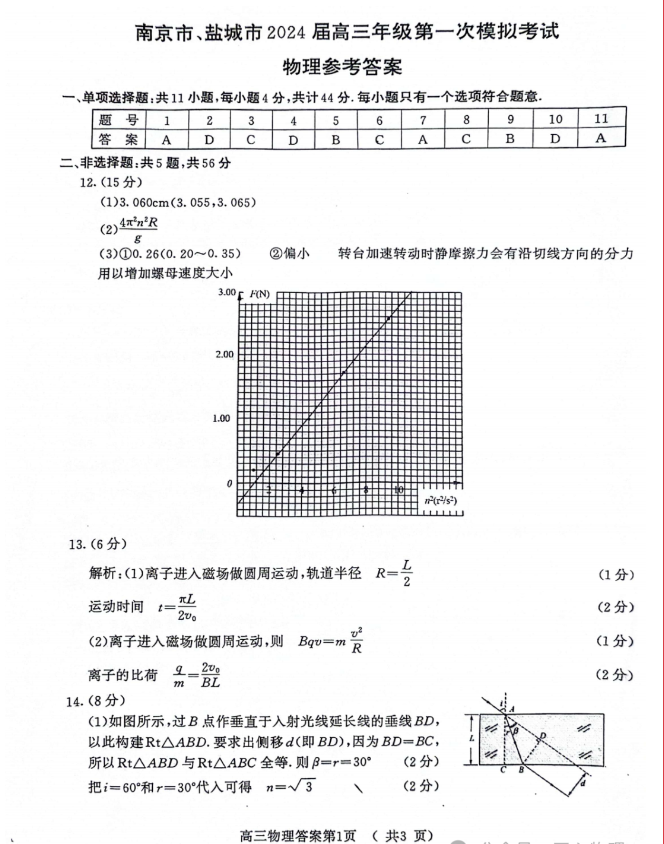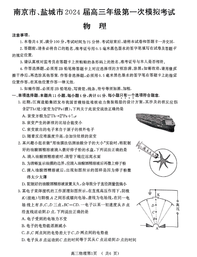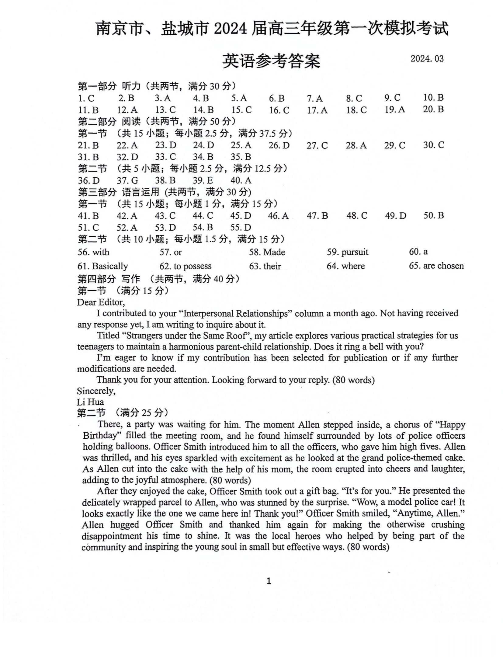以下为2024南京盐城二模各科试题及答案解析汇总:
