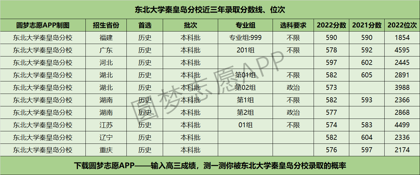 四、东北大学秦皇岛分校近年录取分数线及位次【首选历史版】