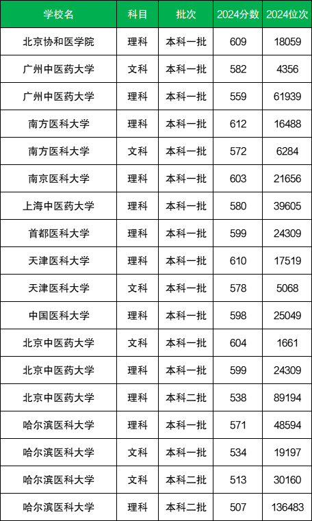 篇幅有限,医药类大学最低录取分数线可直接见下表: