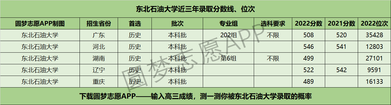 四、东北石油大学近年录取分数线及位次【首选历史版】