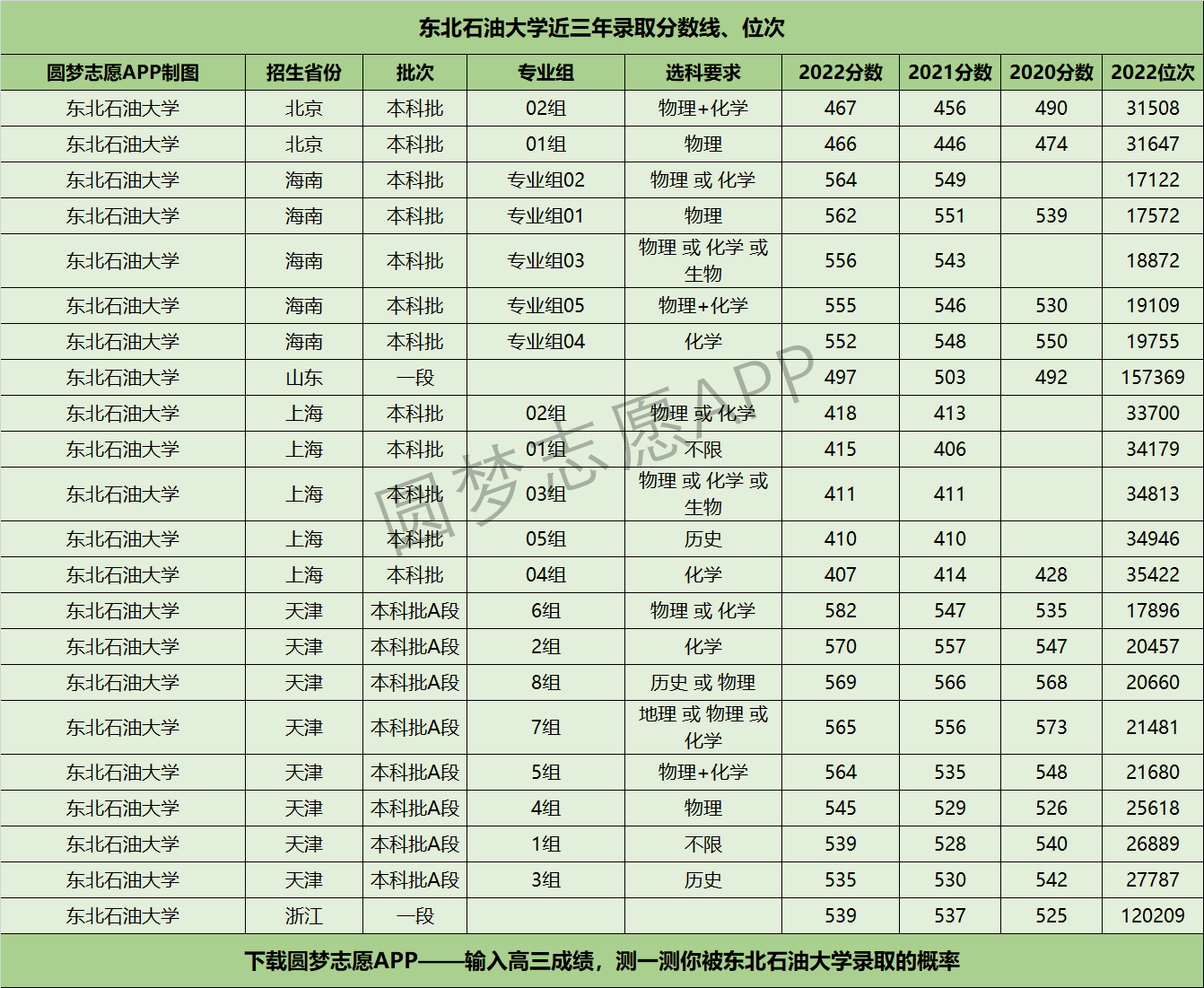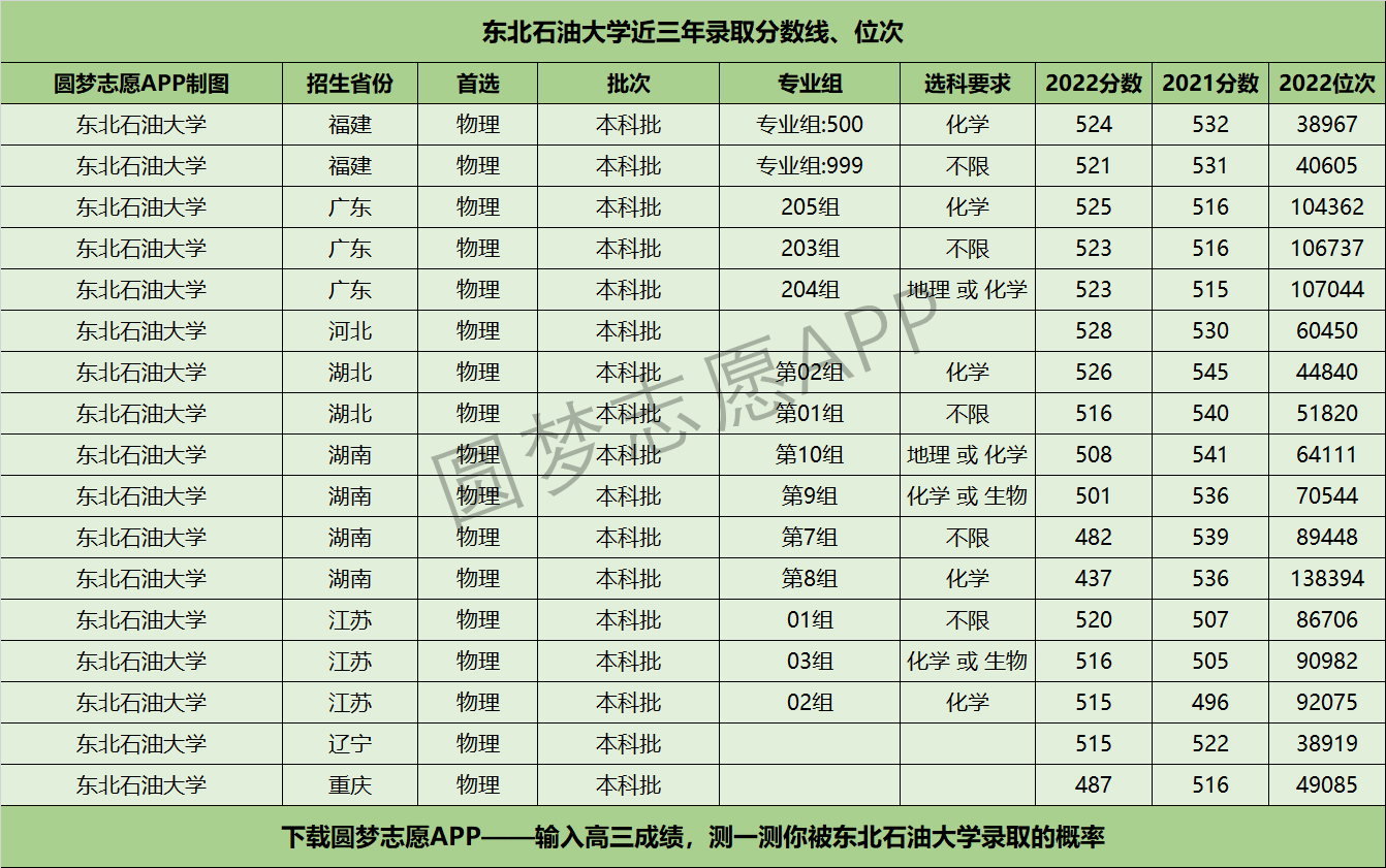 三、东北石油大学近年录取分数线及位次【首选物理版】