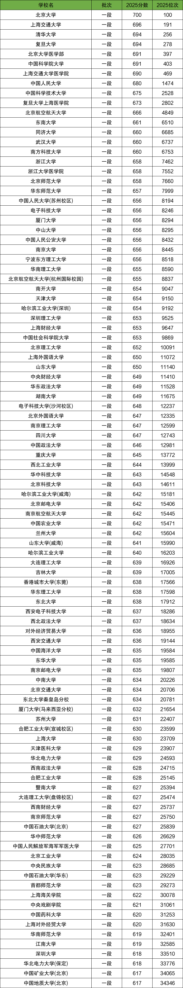 2025年全国各大院校的录取分数线对2026年高考生来说非常重要,具有参考意义。在填报志愿时,分析前几年的录取分数线,可以提高被录取的概率。本期小编整理了2025年全国各大院校的录取分数线及位次一览表,供2026高考参考。
