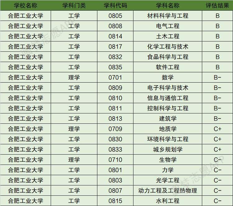 以下为合肥工业大学其余学科评估排名结果