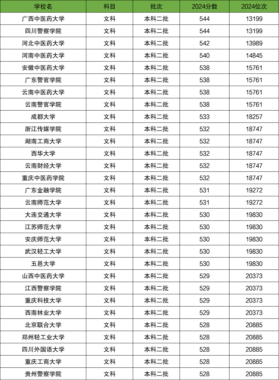 因本文篇幅有限,只列举了2024年全国二本大学在四川省文理科分数线排名最好的前30所大学,供大家参考。