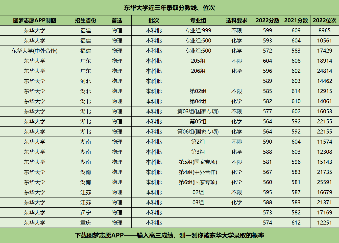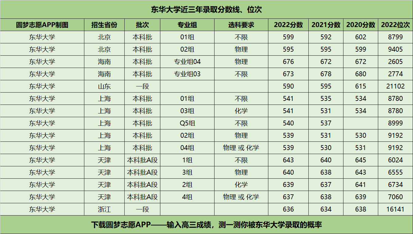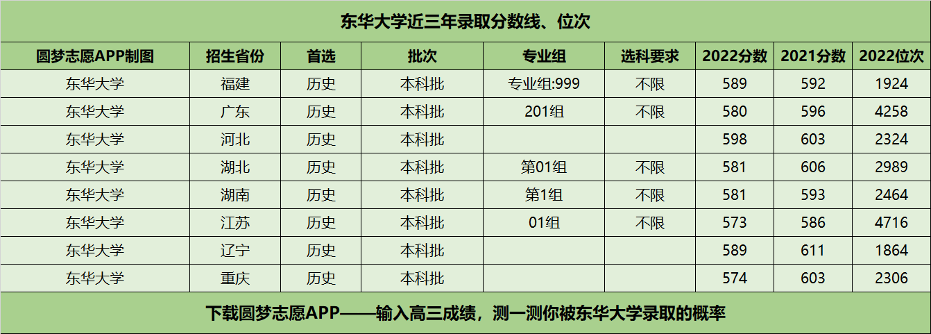 本文含东华大学近三年在【全国所有省市】的高考录取分数线、位次,篇幅较长,你可通过快速滑动找到你的高考省份。