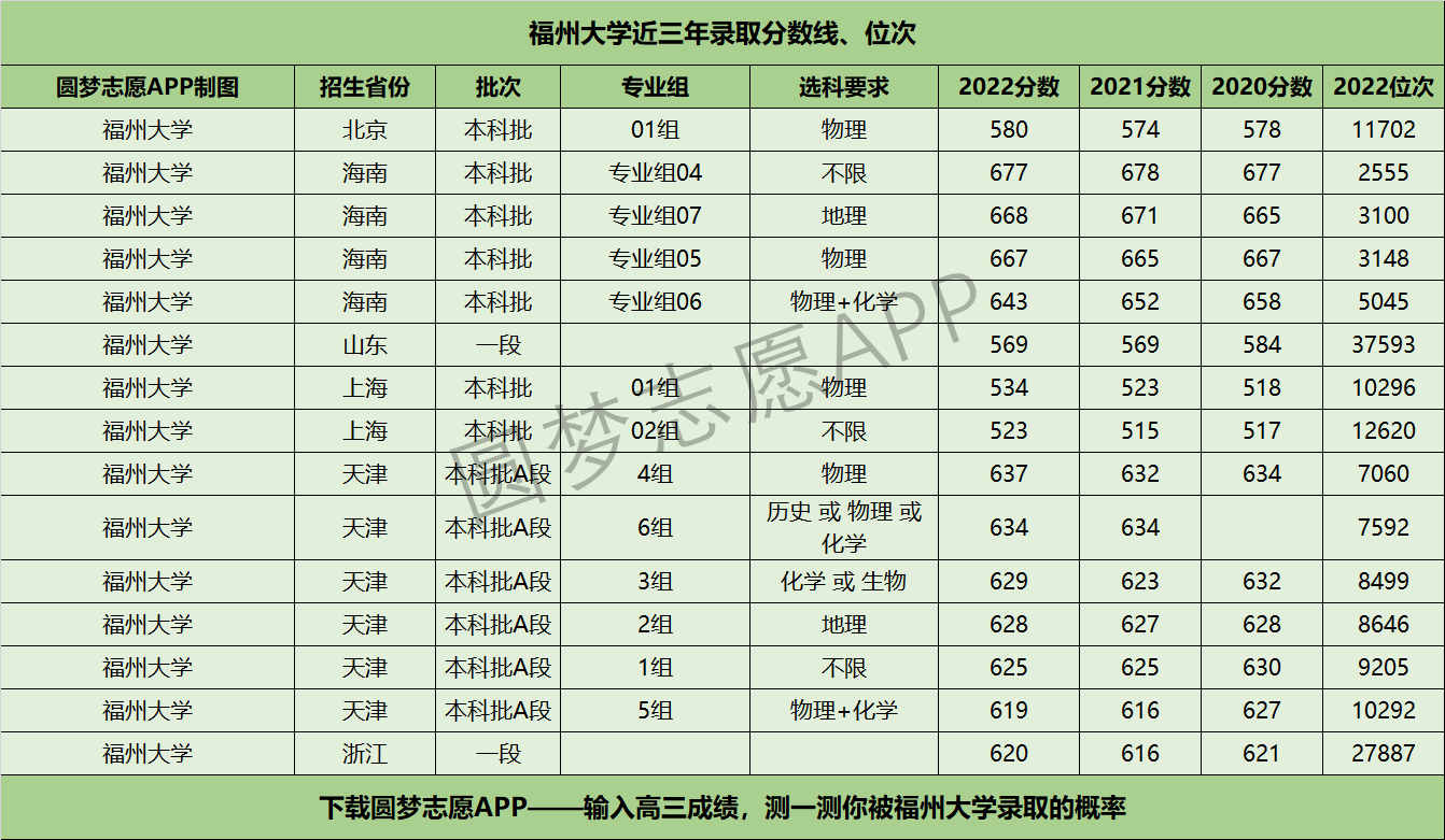 本文含福州大学近三年在【全国所有省市】的高考录取分数线、位次,篇幅较长,你可通过快速滑动找到你的高考省份。