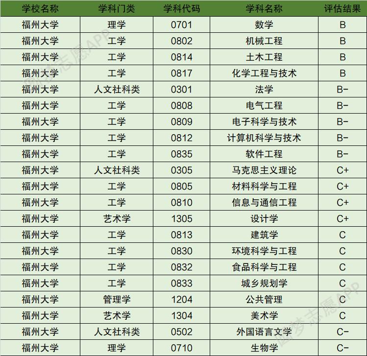 福州大学第五轮学科评估结果暂未公布,但估计会在2022年内公布,教育部公布福州大学第五轮学科评估结果后,本文将在第一时间更新,以下为福州大学第四轮学科评估结果排名。