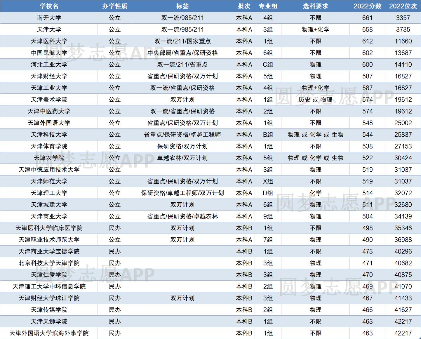 根据天津市2022年全国各大学招生录取分数线一览表可知(可从圆梦志愿APP自行下载查看),2022年天津市有这些学校分数不高,但是前途无量: