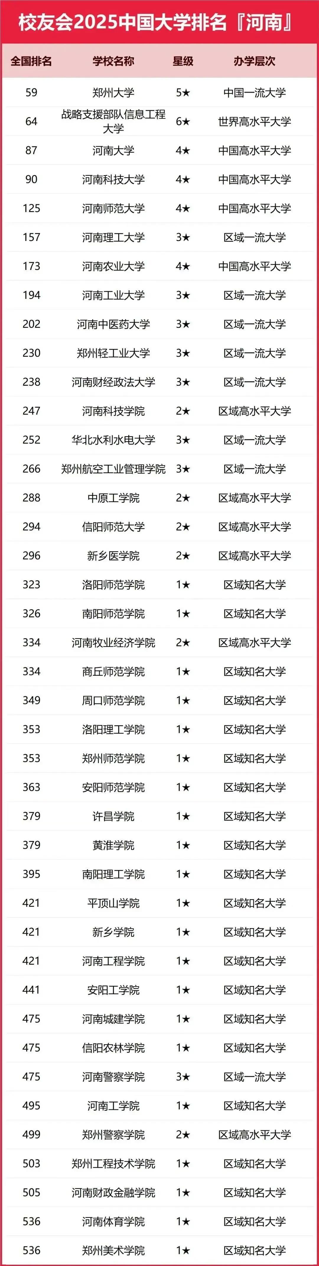 根据校友会2025年河南省大学排名,河南最好的大学是:郑州大学,在全国大学中排名第59名,也是河南省的211大学。