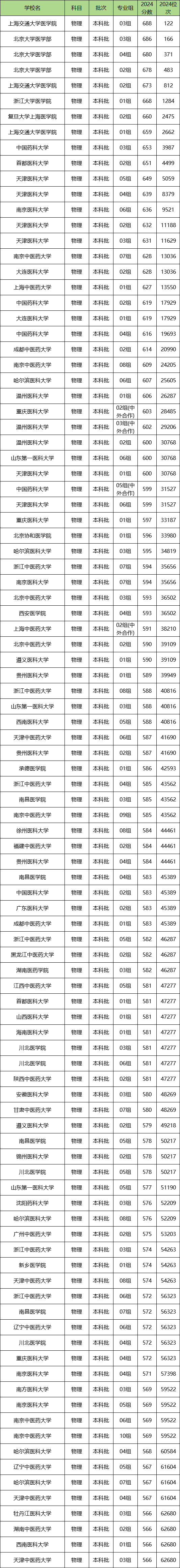 二、医科大学录取分:物理类