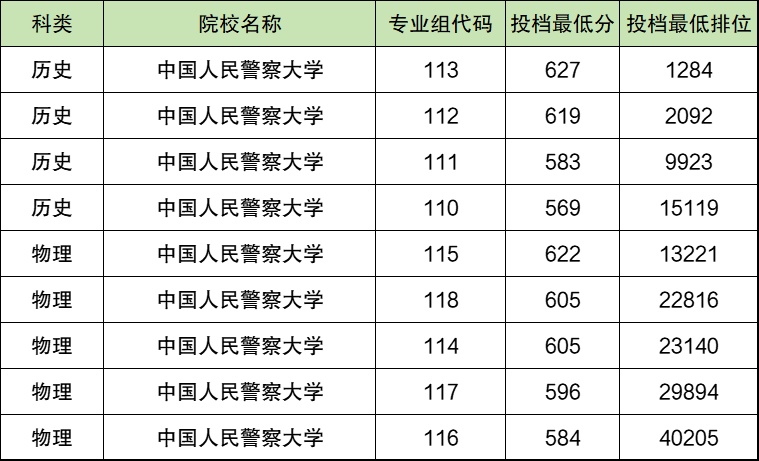 中国人民警察大学在江西提前批最低录取分数线为:历史类596分、物理类545分。