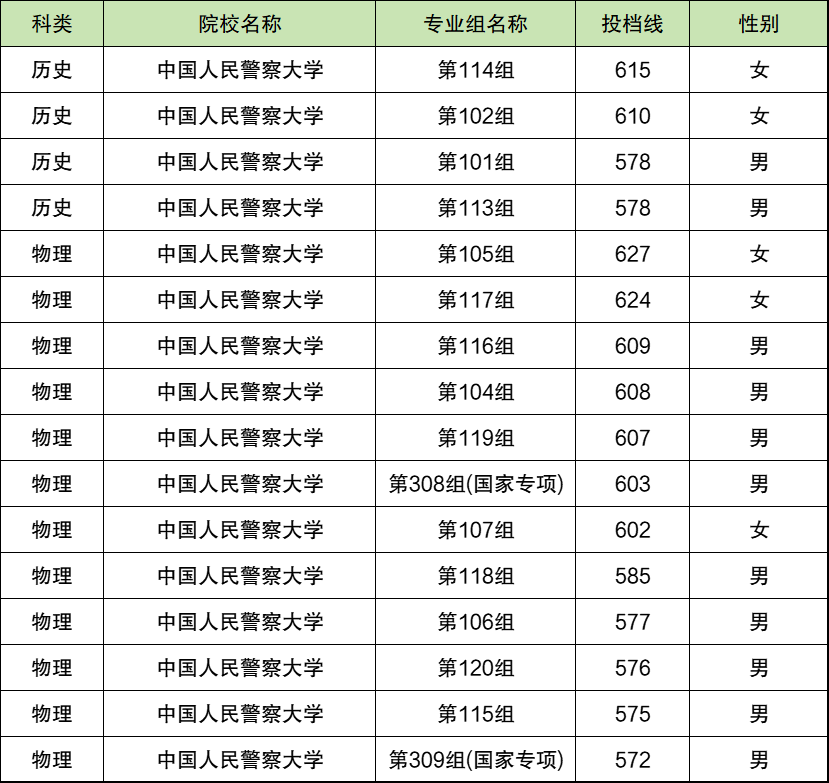 中国人民警察大学在湖南提前批最低录取分数线为:历史类578分、物理类572分。