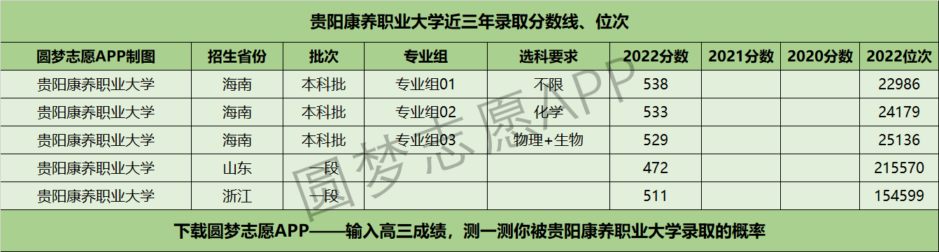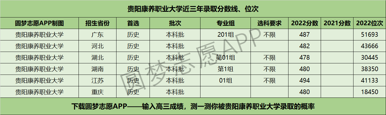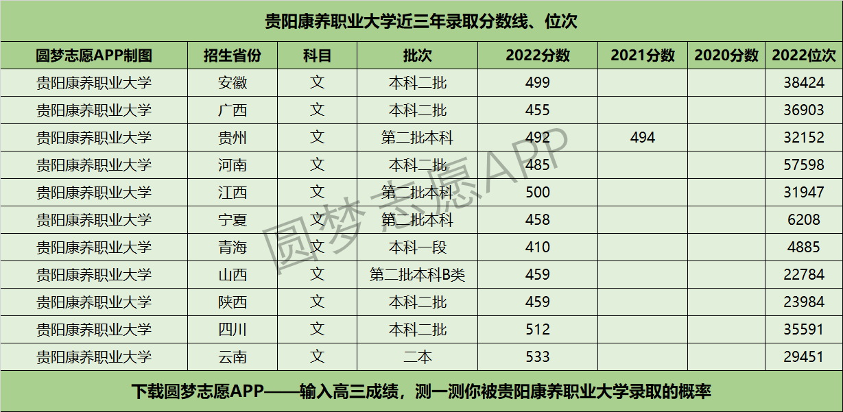 四、贵阳康养职业大学近年录取分数线及位次【首选历史版】