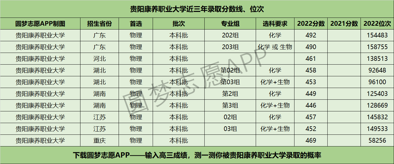 三、贵阳康养职业大学近年录取分数线及位次【首选物理版】