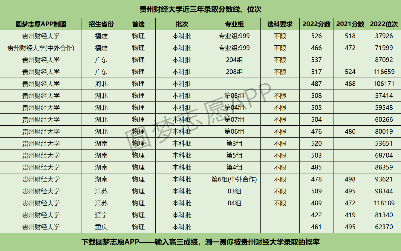 三、贵州财经大学近年录取分数线及位次【首选物理版】