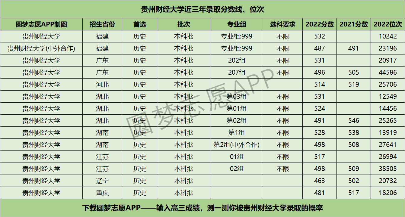 四、贵州财经大学近年录取分数线及位次【首选历史版】