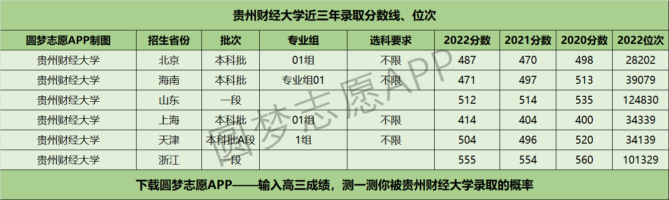 五、贵州财经大学近年录取分数线及位次【6选3省份】