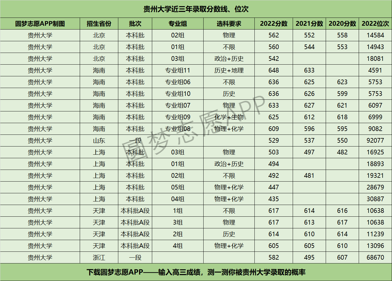 五、贵州大学近年录取分数线及位次【6选3省份】
