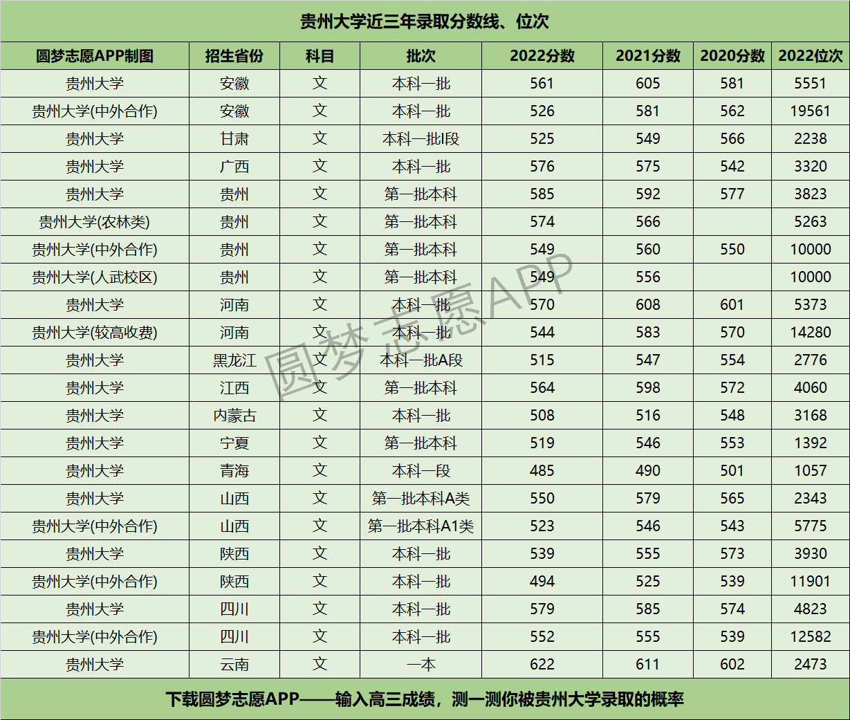 四、贵州大学近年录取分数线及位次【首选历史版】