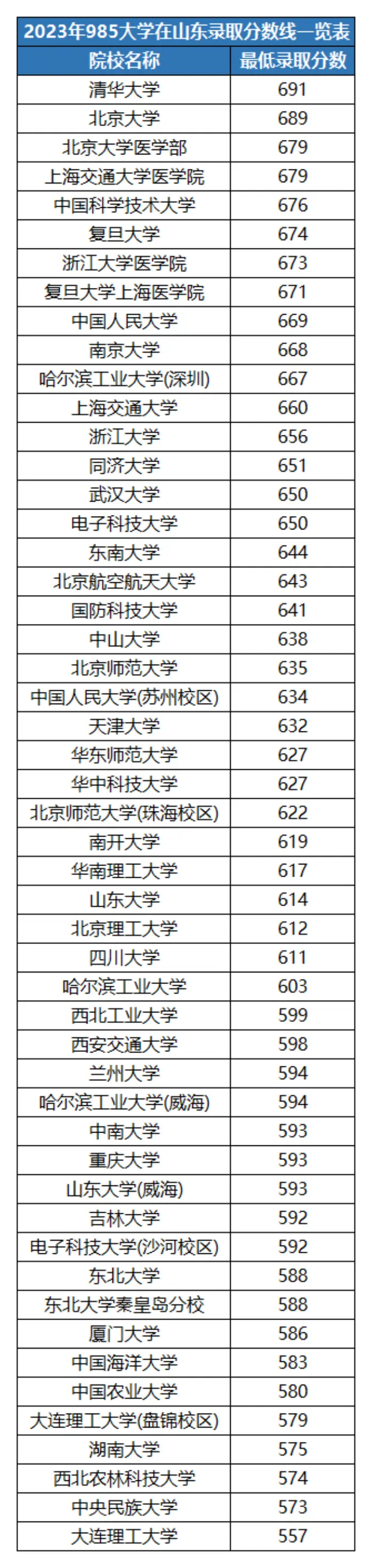 下文以山东为例,我们为大家整理了全国39所985大学以及77所纯211大学在山东综合类的录取分数线,一起来看看985、211大学的最低录取成绩是多少吧!