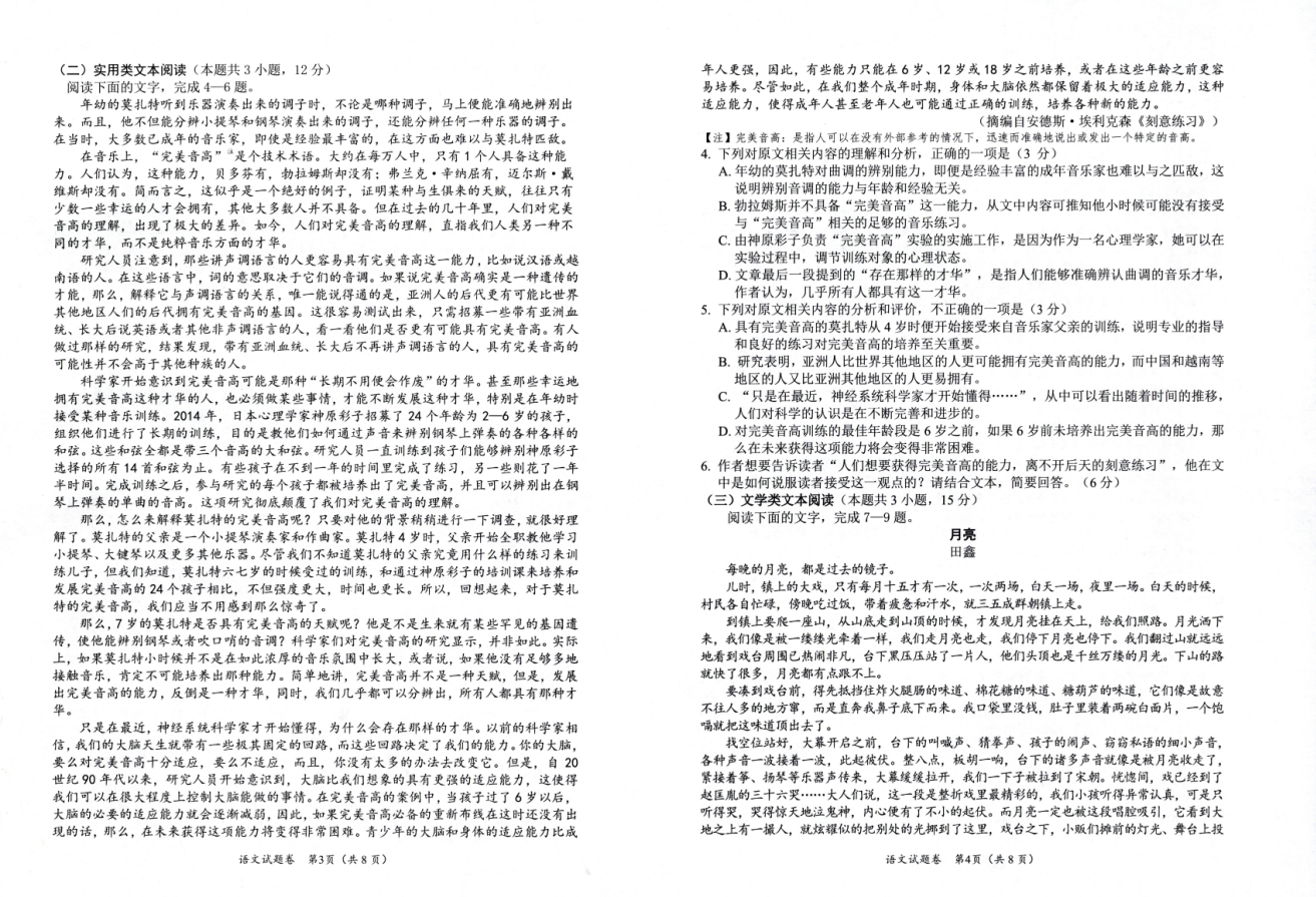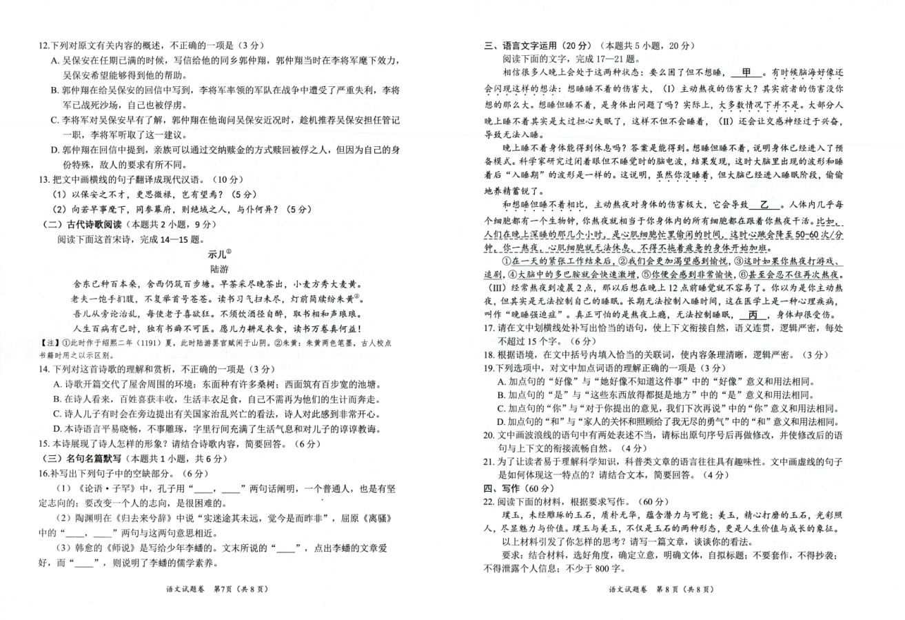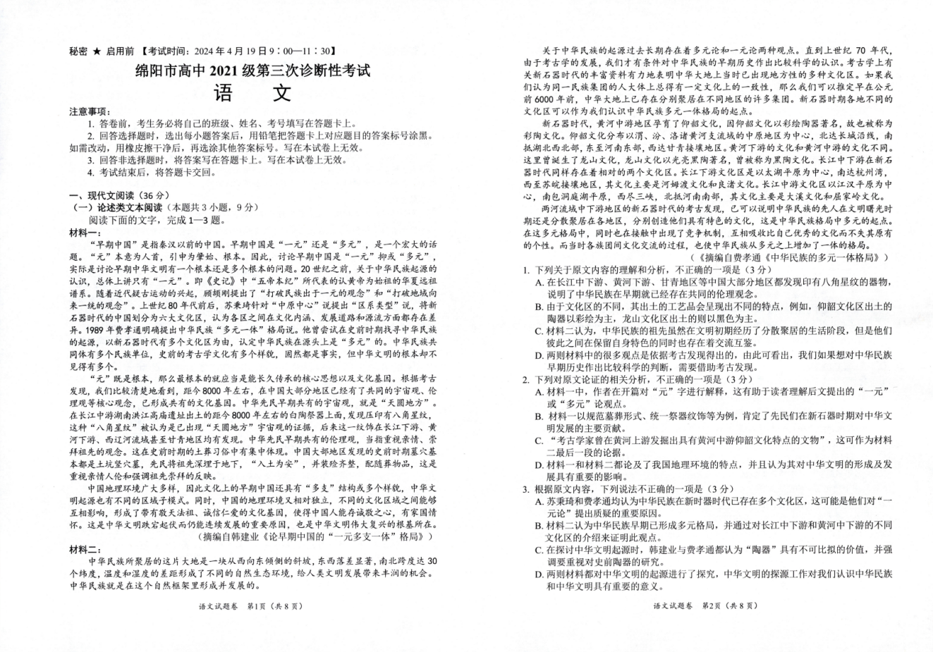 1、2024年绵阳三诊语文试题及答案